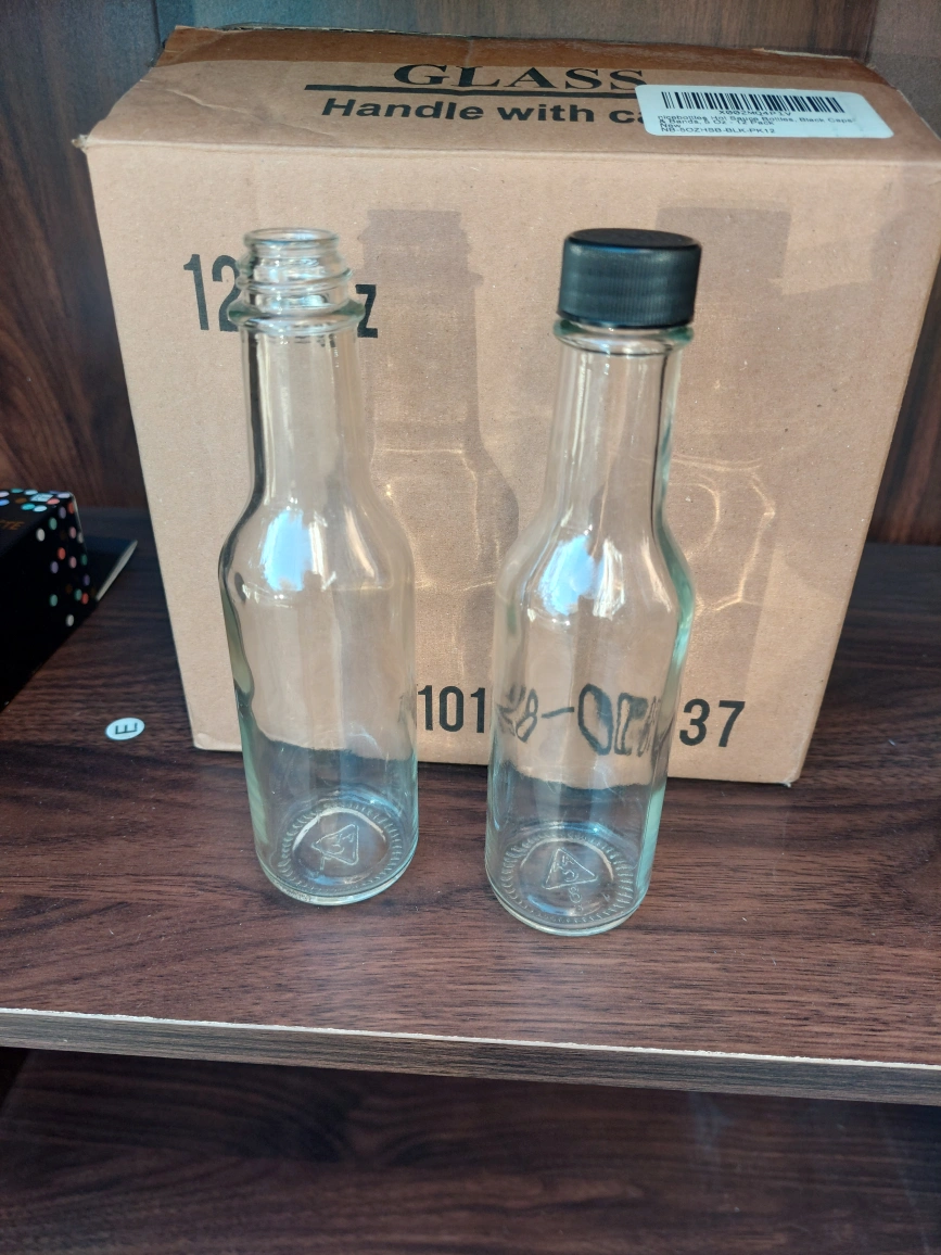 26Selling a set of 12oz glass bottles, some with black caps. The box is included!