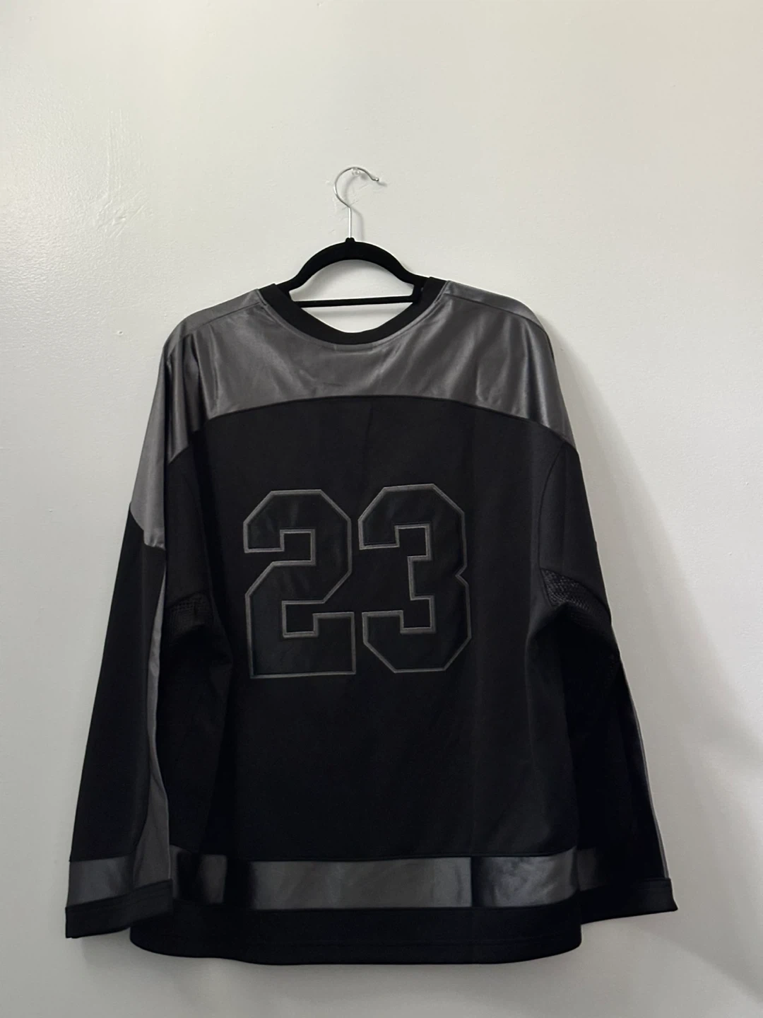 Selling a Jordan long sleeve jersey in black. It features the number 23 on the front and back. The jersey is in great condition and ready for a new home