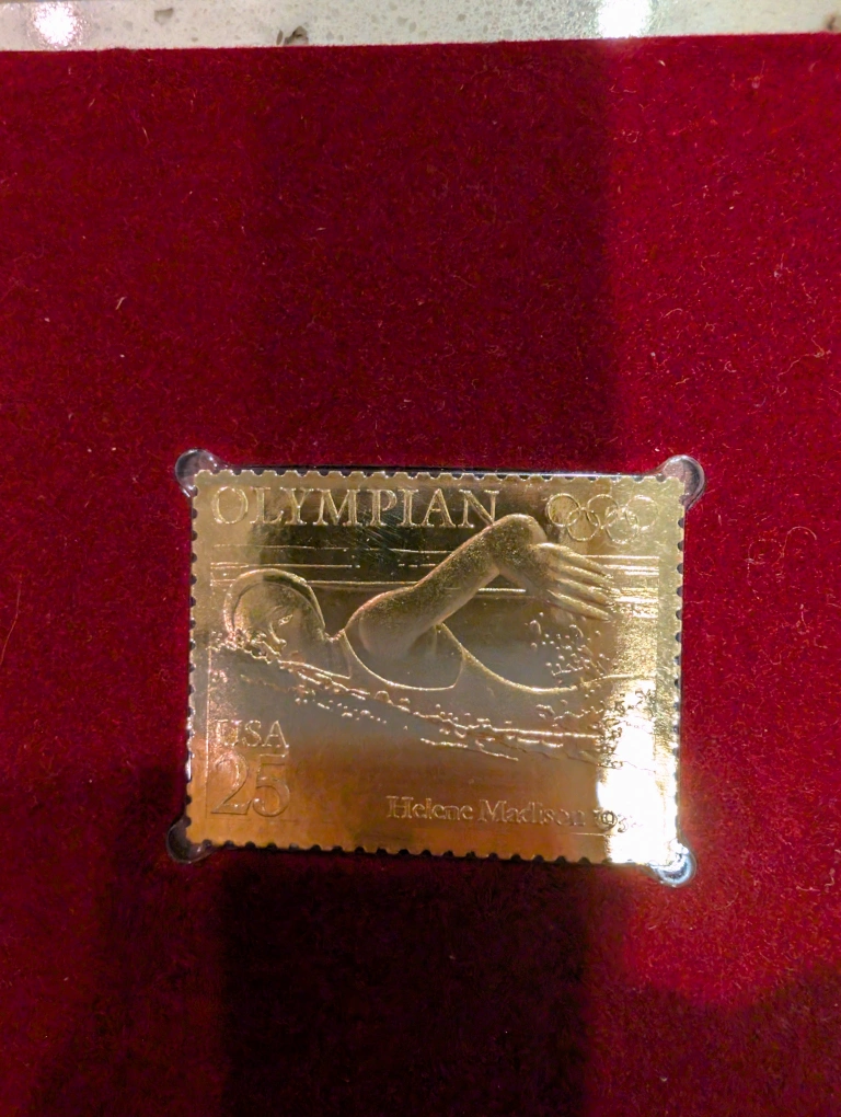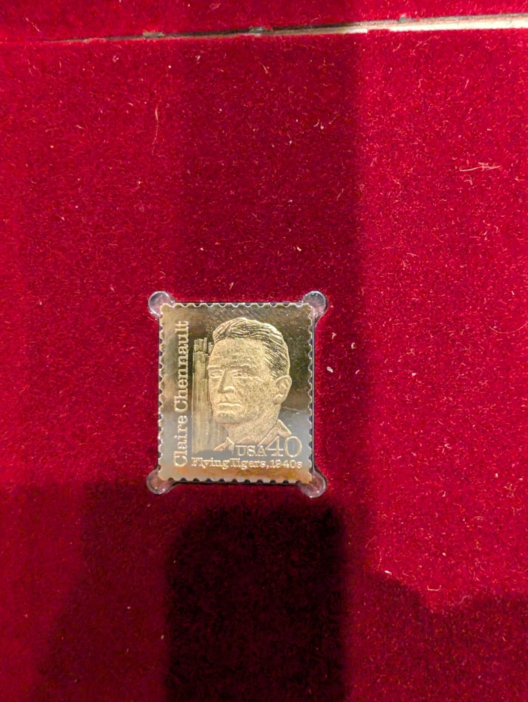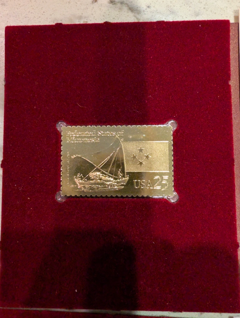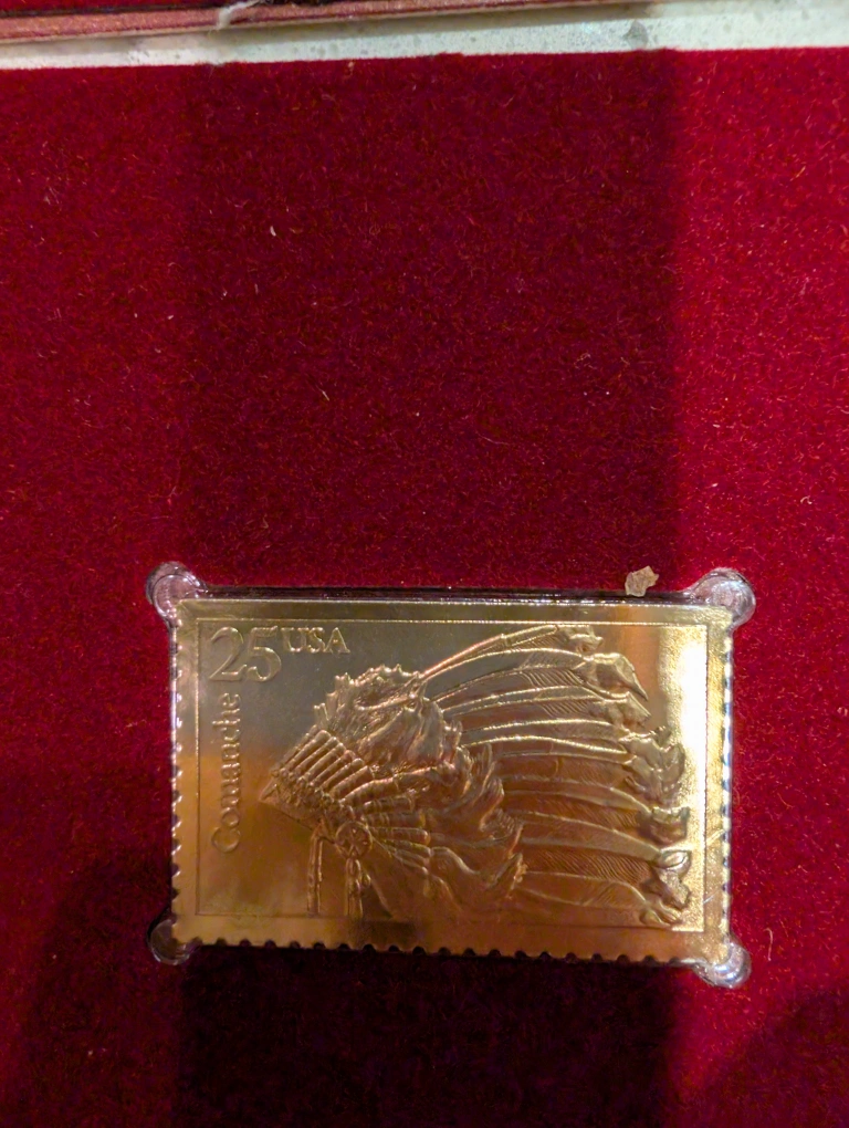 Selling a collection of four 22 KT Gold commemorative stamps, each encased in a protective holder. These stamps celebrate various themes, including Micronesia, Claire Chennault, Olympic Games, and Indian Headdresses. A unique addition to any collection!