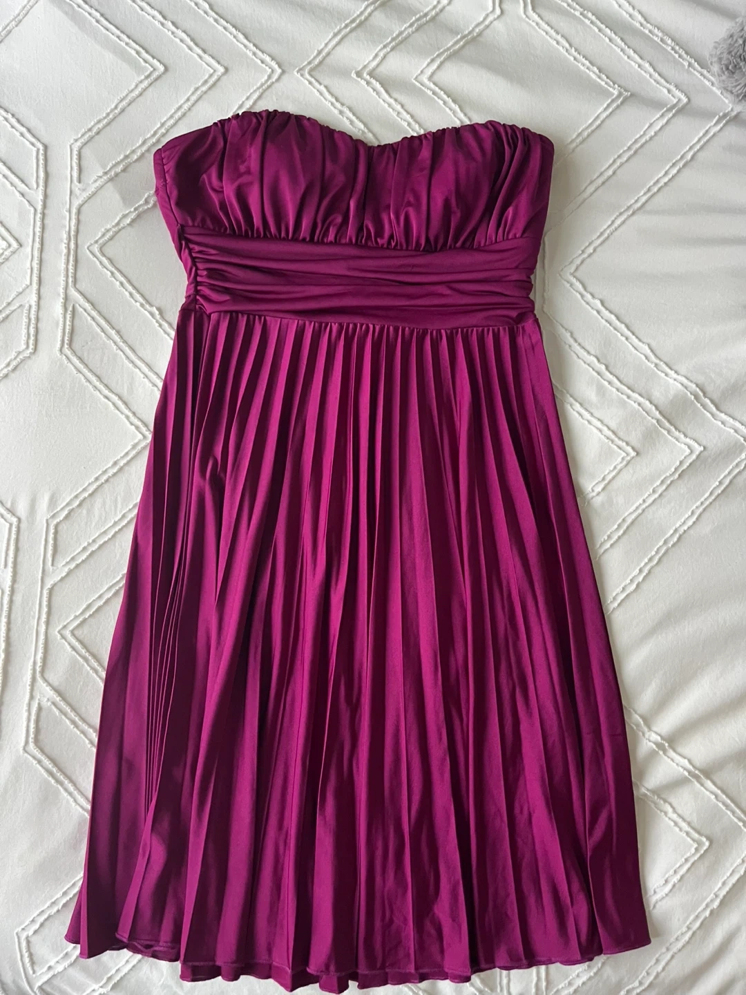 Selling a Speechless purple dress in size medium! It's a strapless dress with a tie at the waist and a pleated skirt. Made in the USA