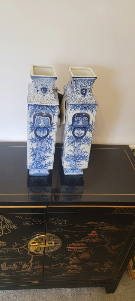 60Selling a pair of beautiful Maitland-Smith vases. They feature a lovely blue and white design, perfect for adding a touch of elegance to any room!