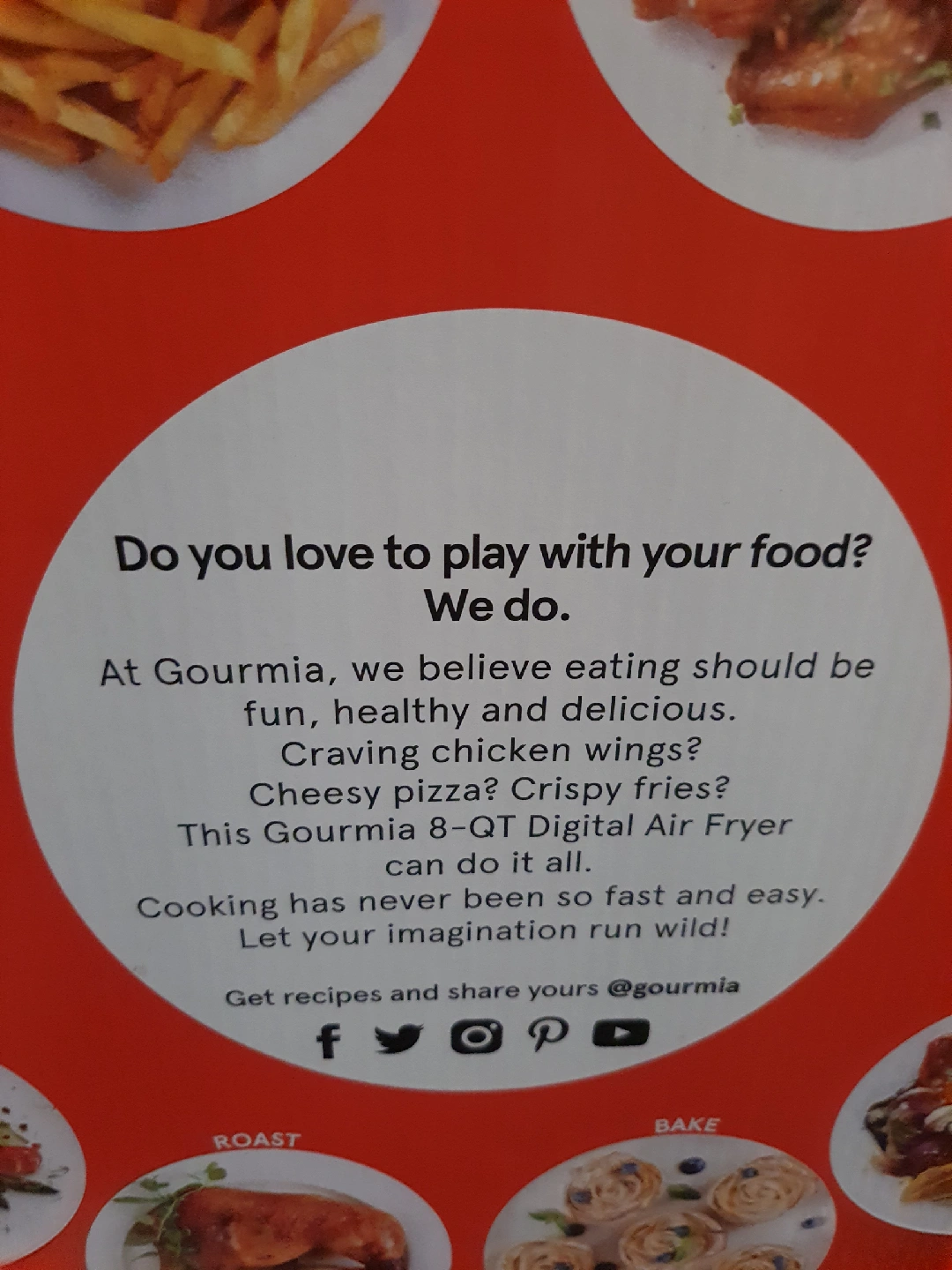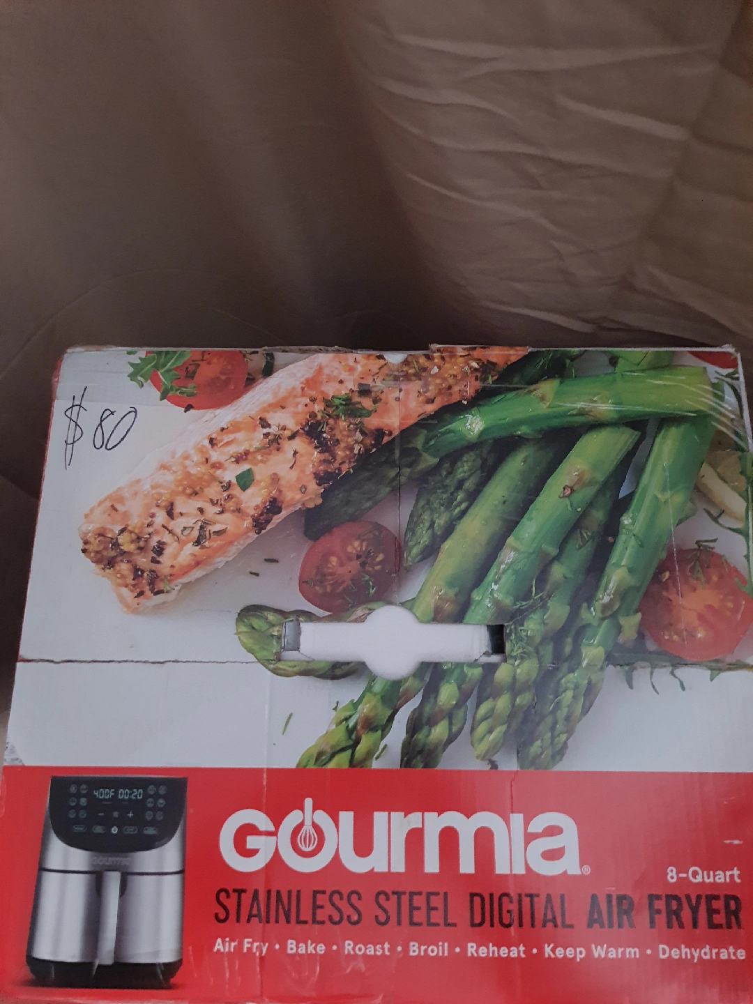 25Selling a Gourmia 8-Quart Digital Air Fryer! It features FryForce 360° Technology and a perfect crisp system. The spacious 8-quart basket is great for cooking for family and friends! It also has 12 one-touch cooking functions, including a dehydrate function. Cooking has never been so fast and easy