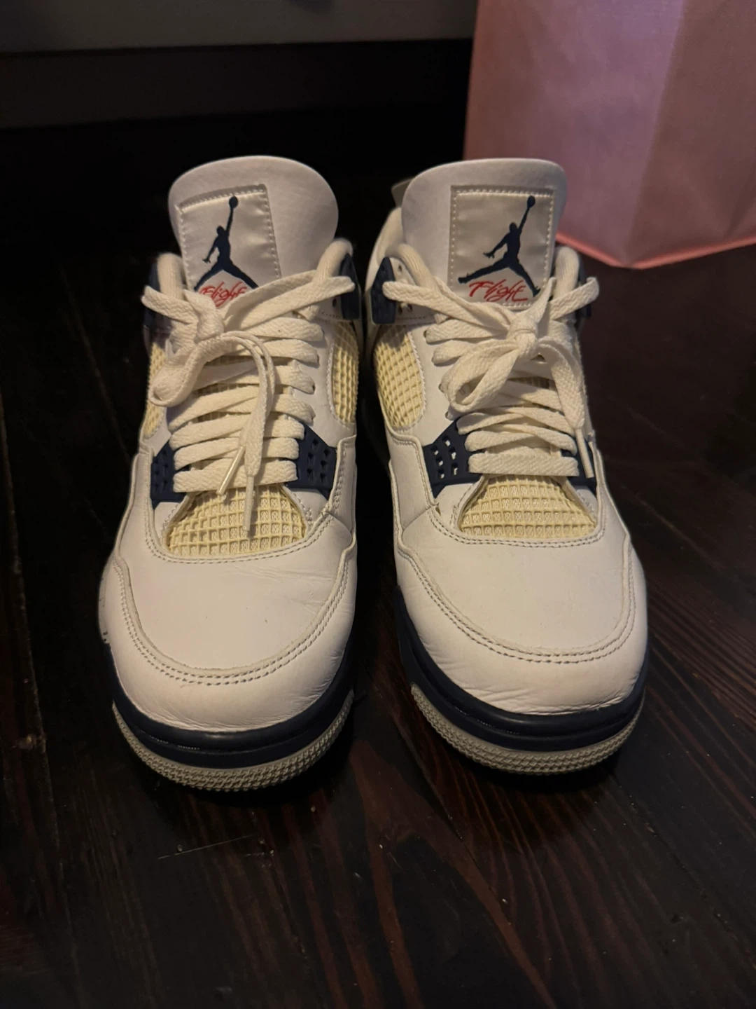 Selling a pair of Air Jordan 4 Retro sneakers. They have a classic design and are in good condition. Worn one time for pictures! Perfect for everyday wear or for adding to your sneaker collection!