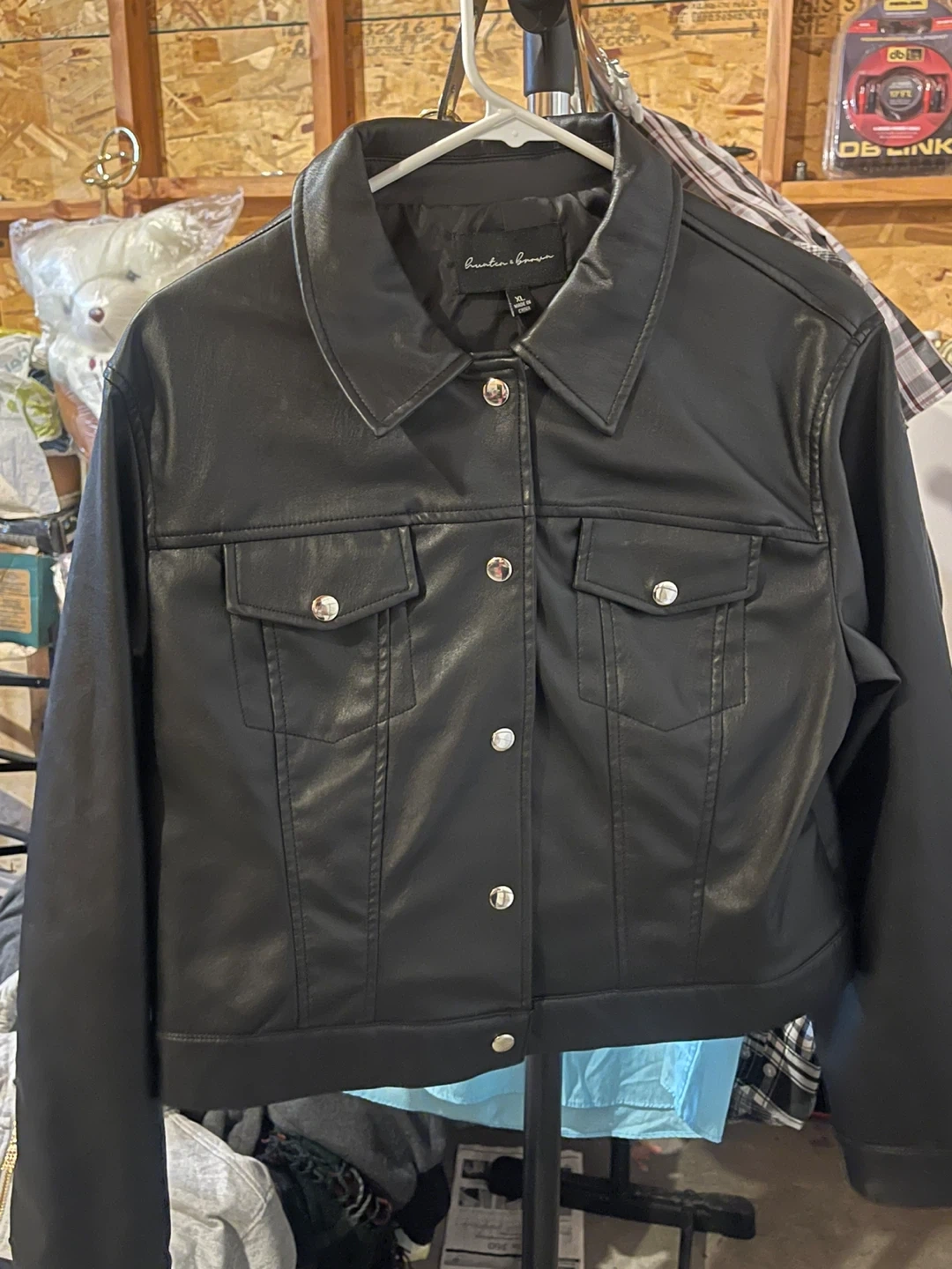 10Here's a cute black faux leather jacket! It's in great condition. Size X-Large
