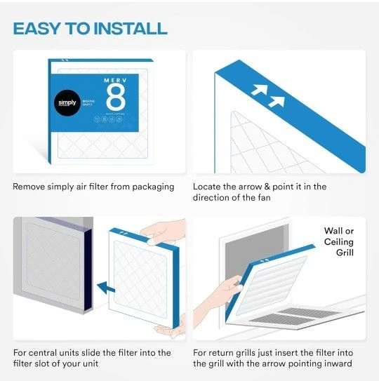 Enjoy up to 3 months of resilient filtration. Hassle-free replacement for air conditioning units or HVAC systems. Follow airflow arrows and insert into the filter slot for central units or return grilles.