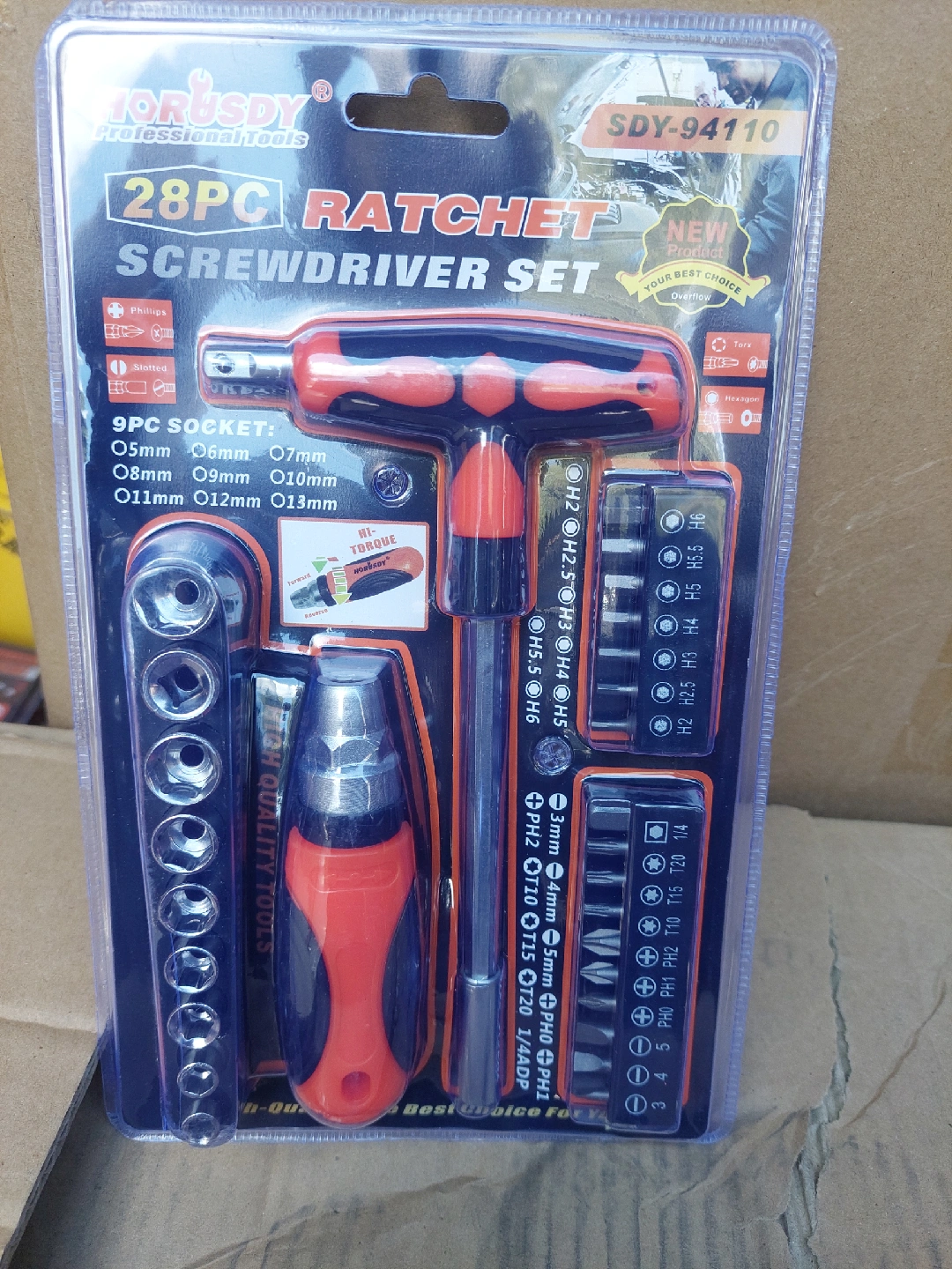 26Selling a brand new MORUSDY 28PC Ratchet Screwdriver Set! This set includes Phillips, Slotted, Torx, and Hexagon screwdriver heads. Also included are 9PC sockets ranging from 05mm to 13mm. Get all your screwdriving needs covered with this set!