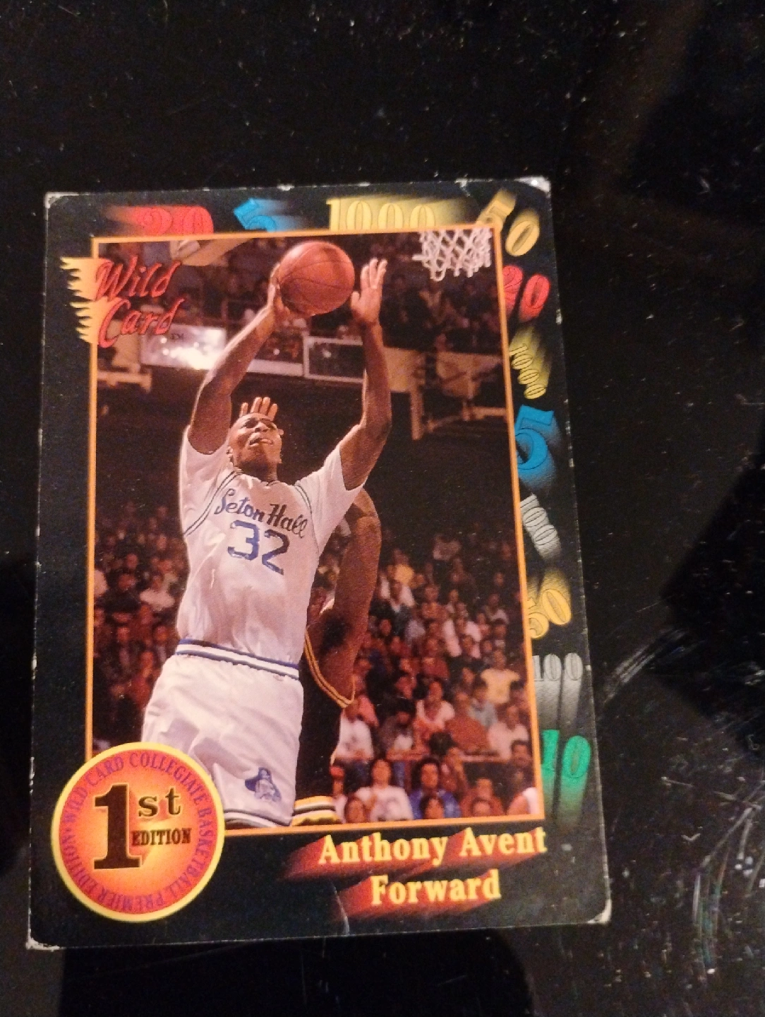 Selling an Anthony Avent basketball card from the Wild Card series. This card features Anthony Avent as a forward for Seton Hall. A cool collectible for basketball card enthusiasts!