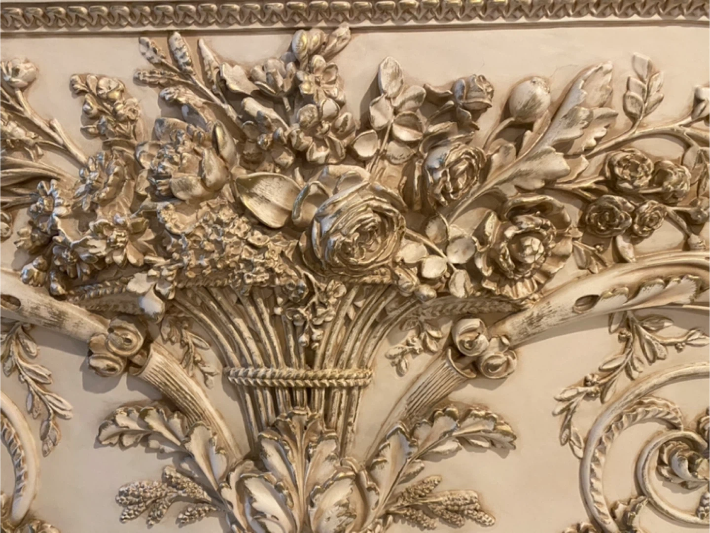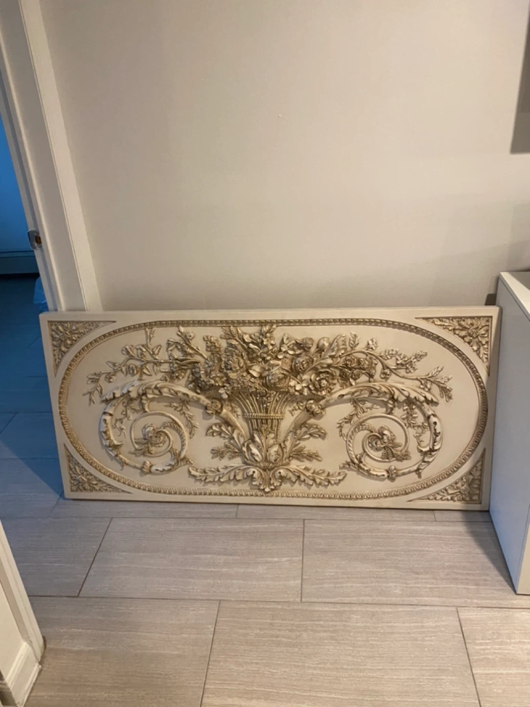 Beautiful vintage floral wall decor piece. Features intricate detailing and a classic design. Perfect for adding a touch of elegance to any room!