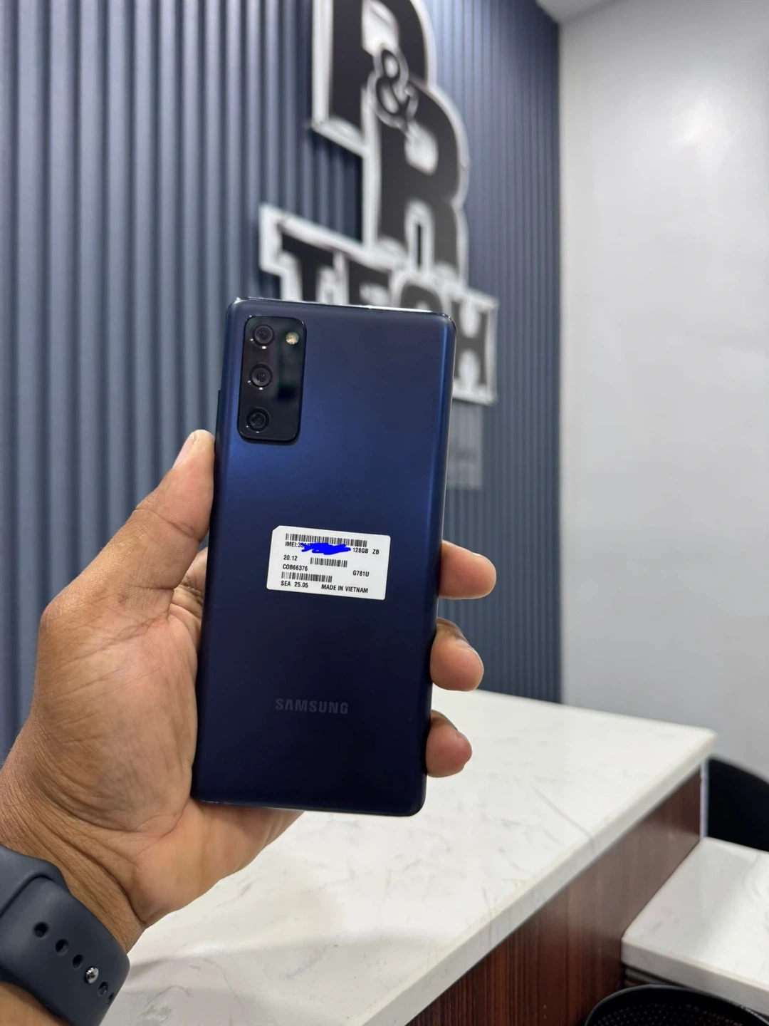 65Selling a Samsung Galaxy S20 FE in navy blue. It's in great condition and ready for a new owner. Feel free to reach out with any questions!