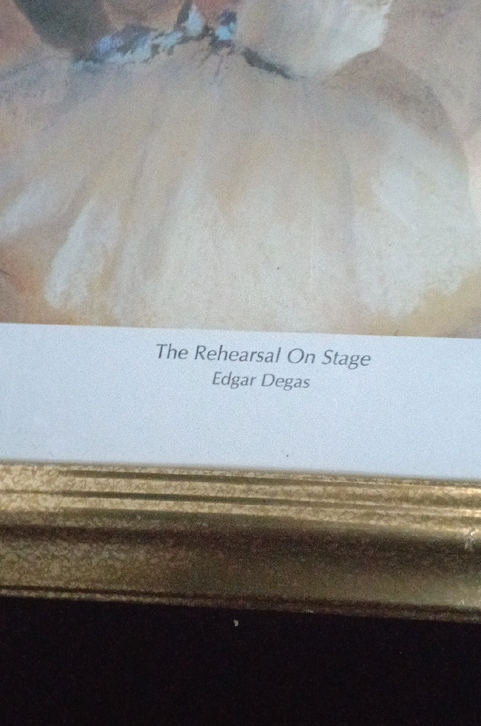 584Selling a framed print of Edgar Degas' "The Rehearsal On Stage" painting. The frame is gold-colored and the print is in good condition. It's a lovely piece for any art enthusiast!