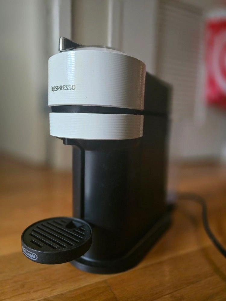 Selling my Nespresso De’Longhi VertuoPlus Deluxe (Model ENV120W) in white. This Nespresso machine brews espresso and coffee in multiple sizes using Nespresso’s VERTUO pods (will not work with the classic pods). Gently used. No leaks or mechanical issues. Ready to use right away. ☕ Features: - Centrifusion™ technology for perfect crema and balanced flavor - One-touch brewing with automatic capsule ejection - Adjustable water tank and automatic shut-off - Works with all Nespresso Vertuo capsules, including the carafe sizes 📦 Included: - Original machine (cleaned) and box - Built-in water tank and capsule container - Power cord and drip tray - NO Vertuo Pods included, sorry 💵 Price: Retails new for ~$180–$200. Asking $90 OBO. 📍 Pickup in Hudson Yards/Chelsea.
