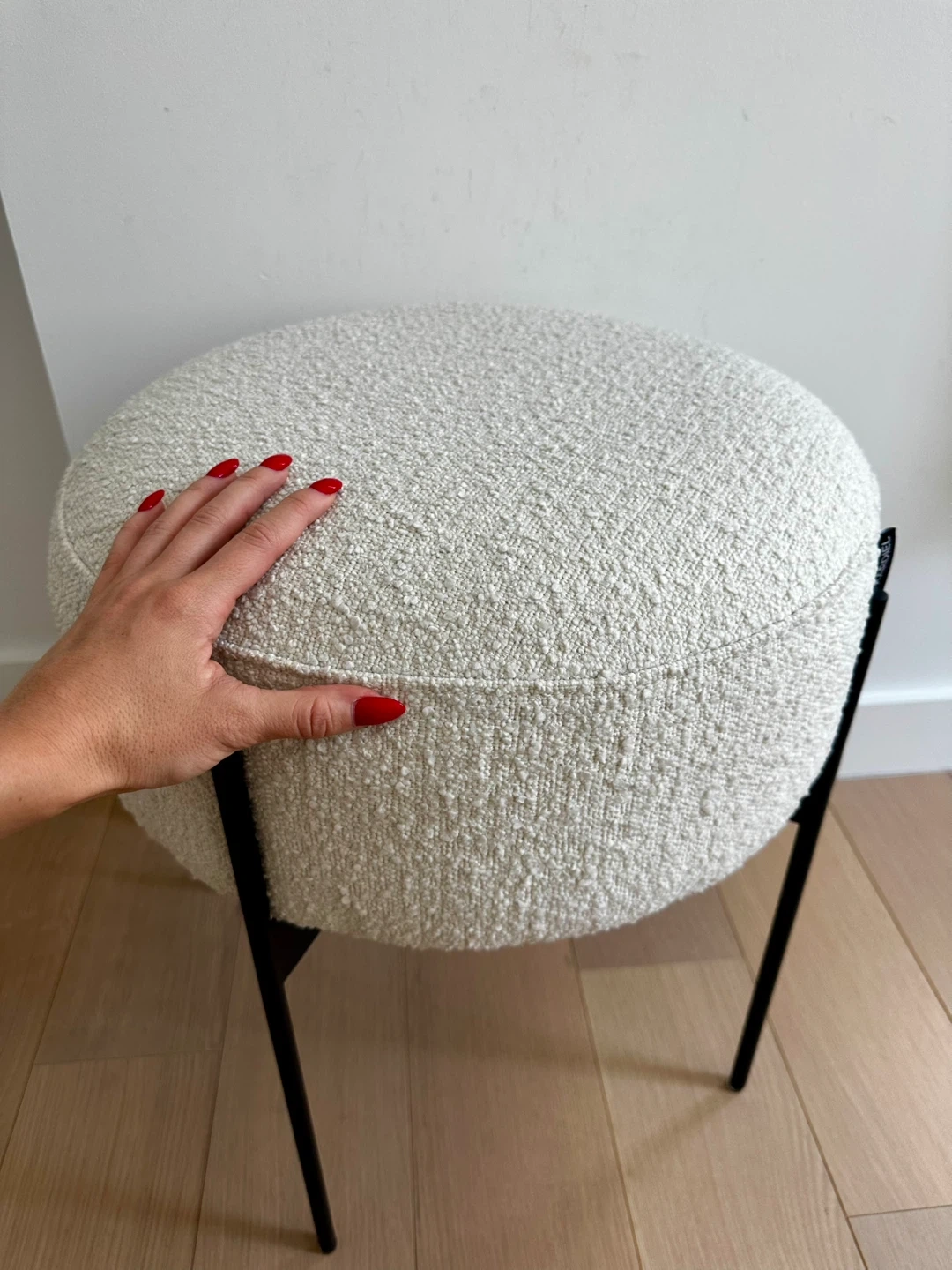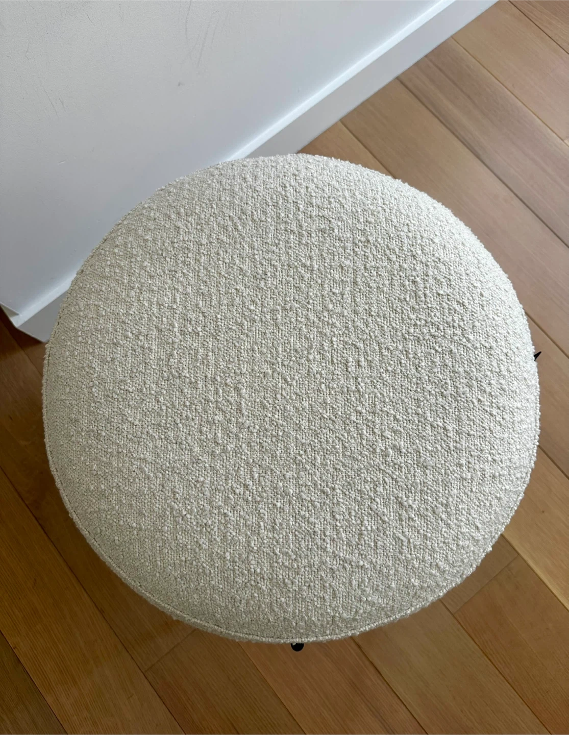 Selling a Kardiel round ottoman stool! It's in great condition (was using basically like a decorative piece) and would be a stylish addition to any room. The color is a lovely cream, and the material consists of polyurethane foam pad and polyester fiber.