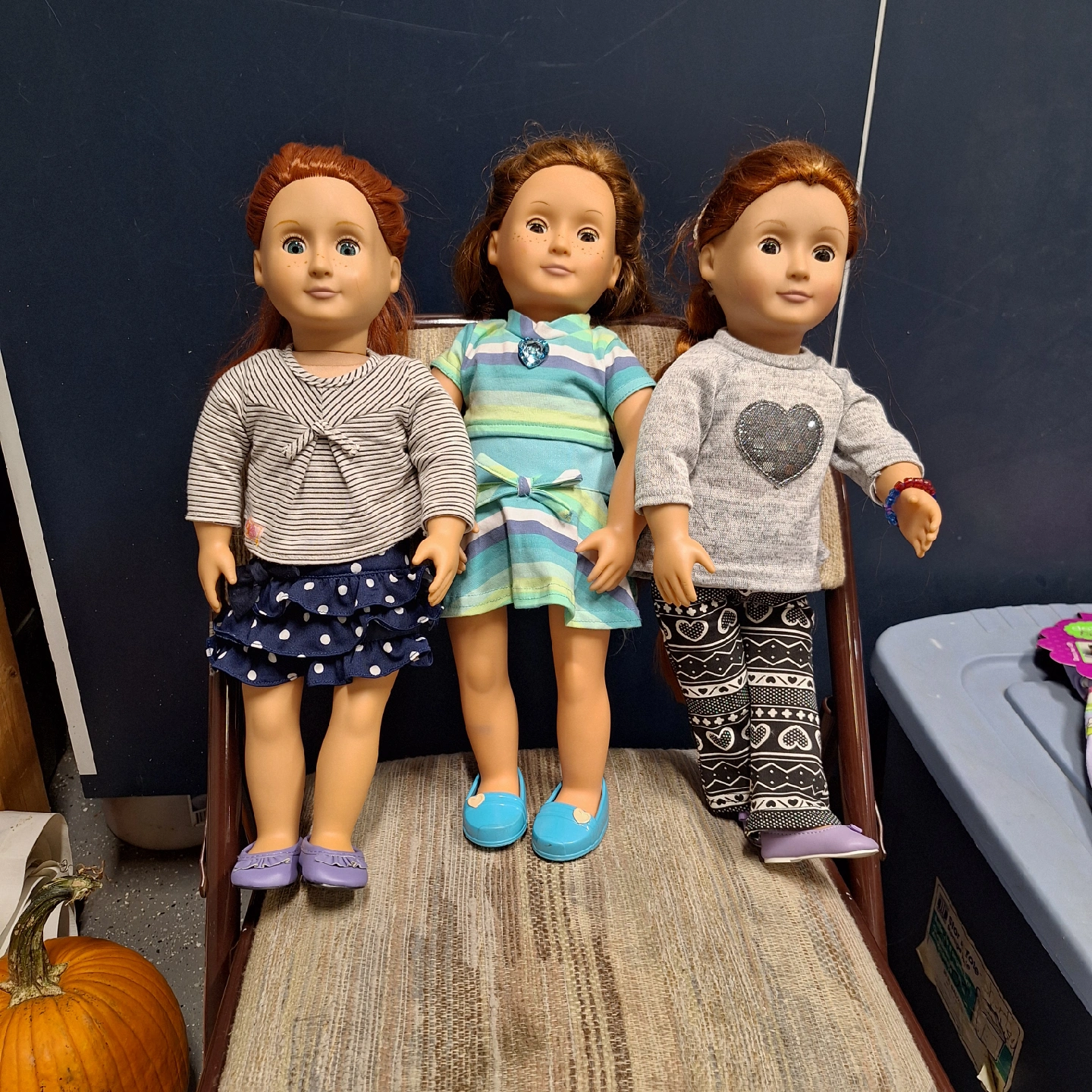 Selling a set of three Our Generation dolls! They are in good condition and ready for a new home. Each doll has a unique outfit and hairstyle. Will sell seperately.