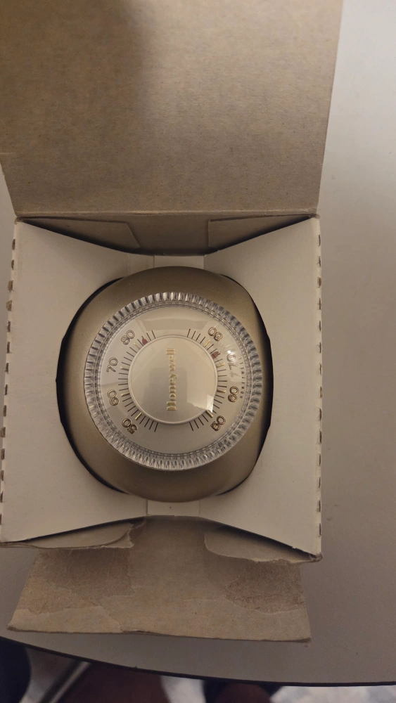Selling a Honeywell The Round heating-cooling low voltage thermostat. It comes in the original box.