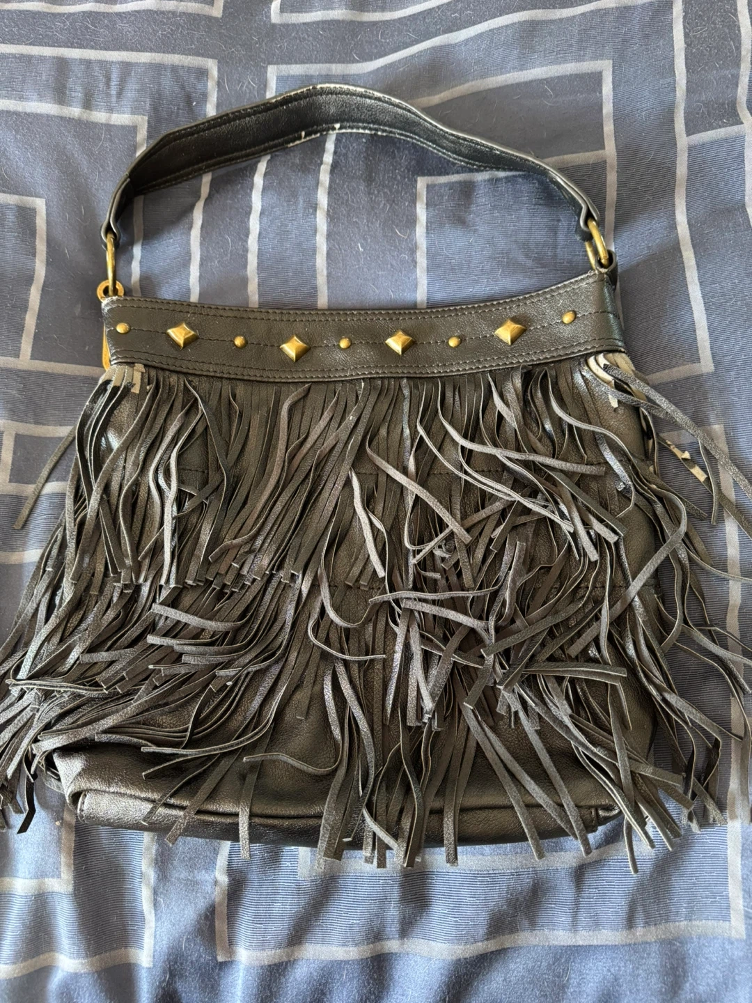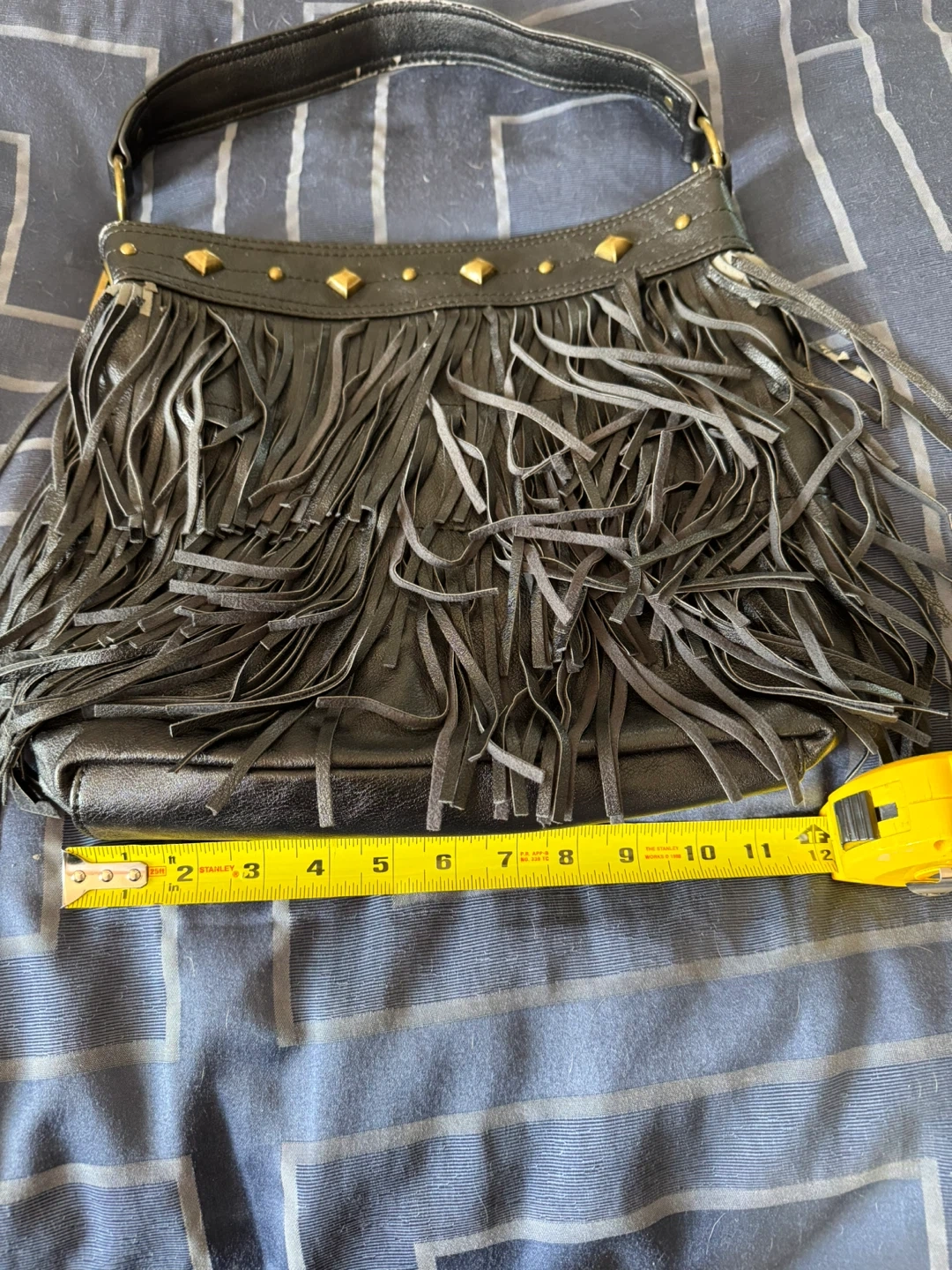 Buy & SellCarlos Santana Black Fringe PurseCarlos Santana Black Fringe Purse$20This is a Carlos Santana black purse with a fringe design. The interior is a bright red. It measures approximately 11 inches in length.ConditionGoodBrandCarlos Santana0 chats·0 favorites·11 viewsSELLERSheilaSauganash,Forest Glen100 reviewsWHERE TO MEETWest Devon Avenue & North Cicero Avenue