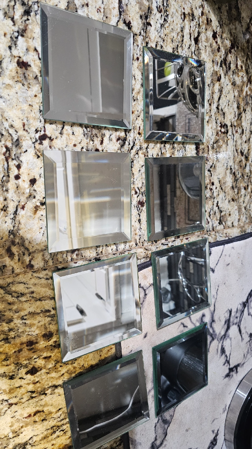 set of 8 Beveled Mirror Glass 4" Square Coasters Vintage barware. $20