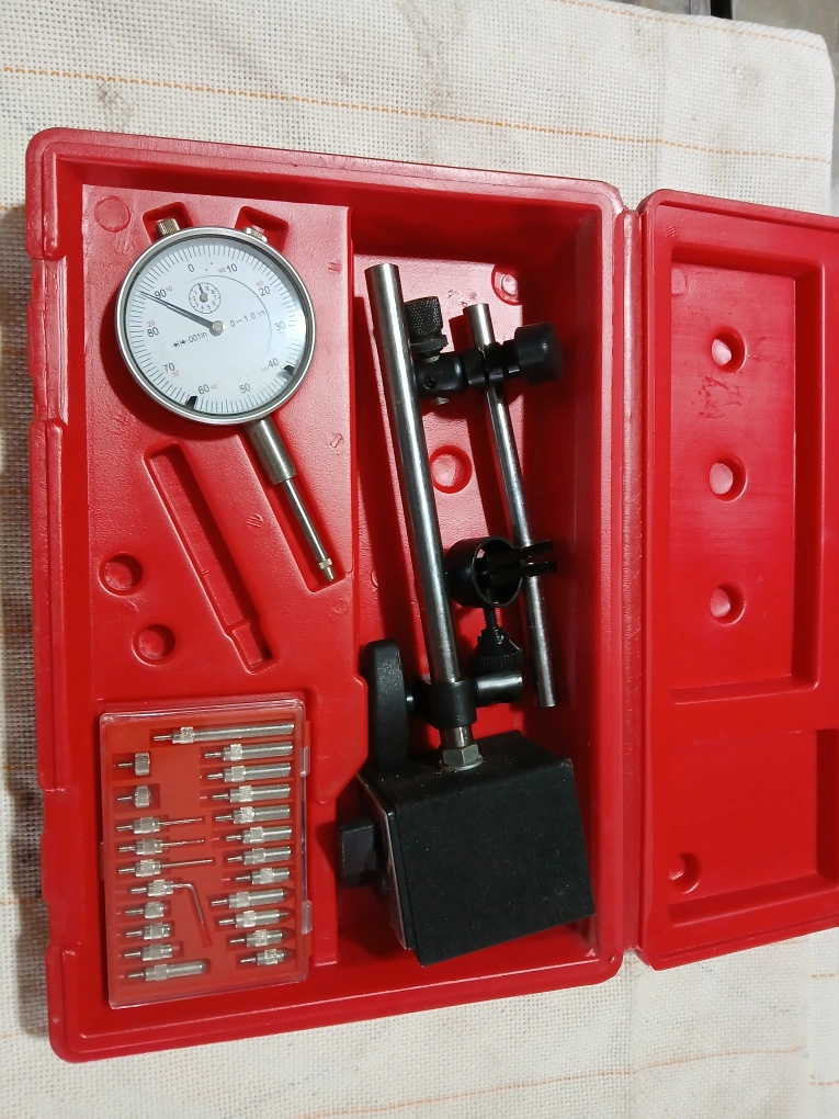 60Selling an indicator magnetic base set. It comes in a red case and appears to be in good condition. Includes all the components shown in the photos.