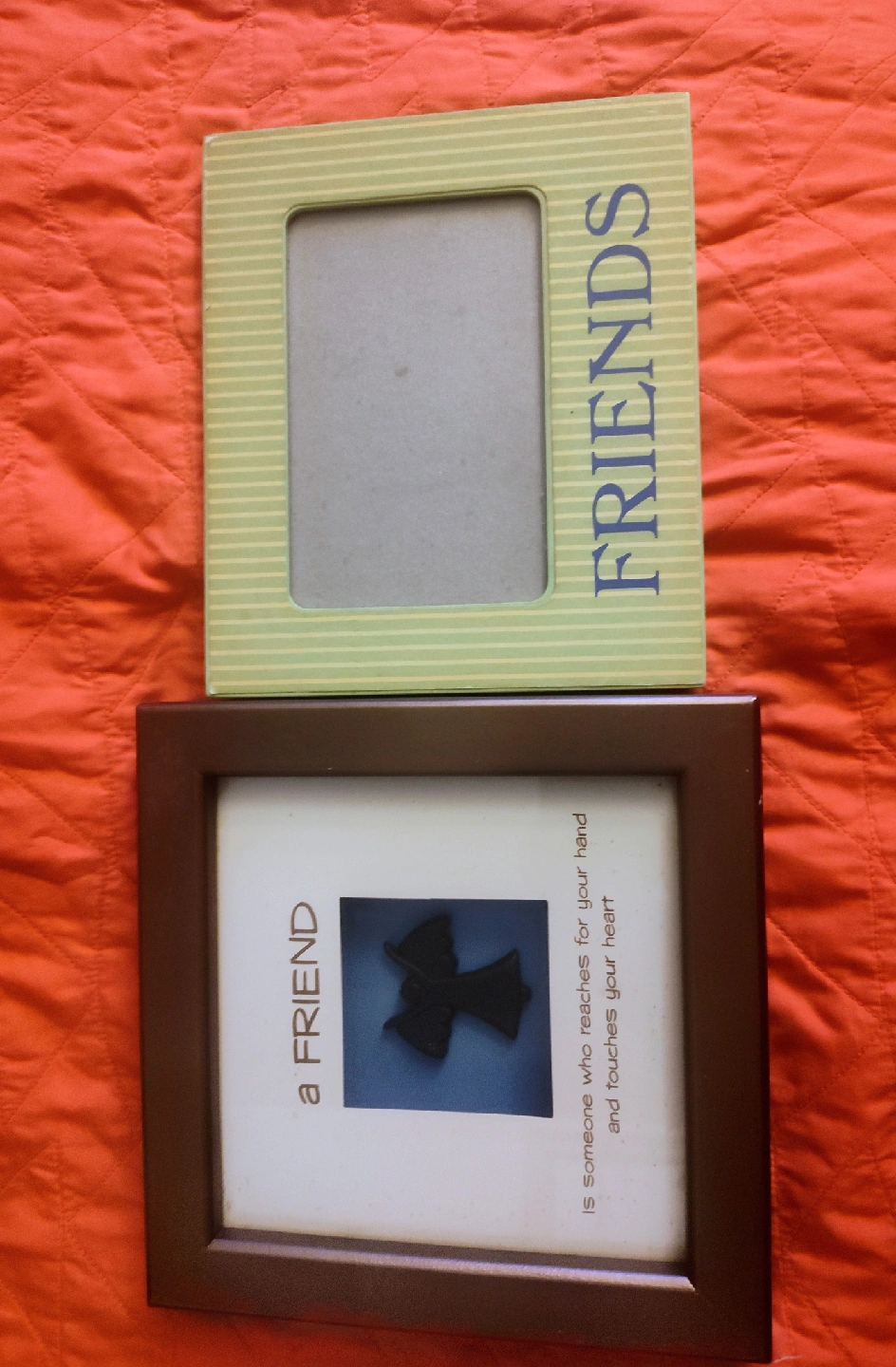 75Selling two picture frames! One is light green with the word "Friends" on it, and the other is brown with the words "A Friend" and a sweet message