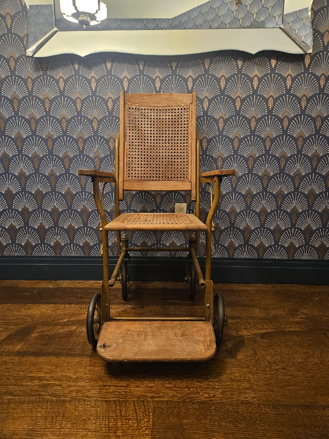 10Selling a vintage wheelchair made of wood and wicker. It has a unique, classic look. Perfect as a decorative piece or for restoration projects. The chair shows signs of wear consistent with its age. I have more photos to share if interested.
