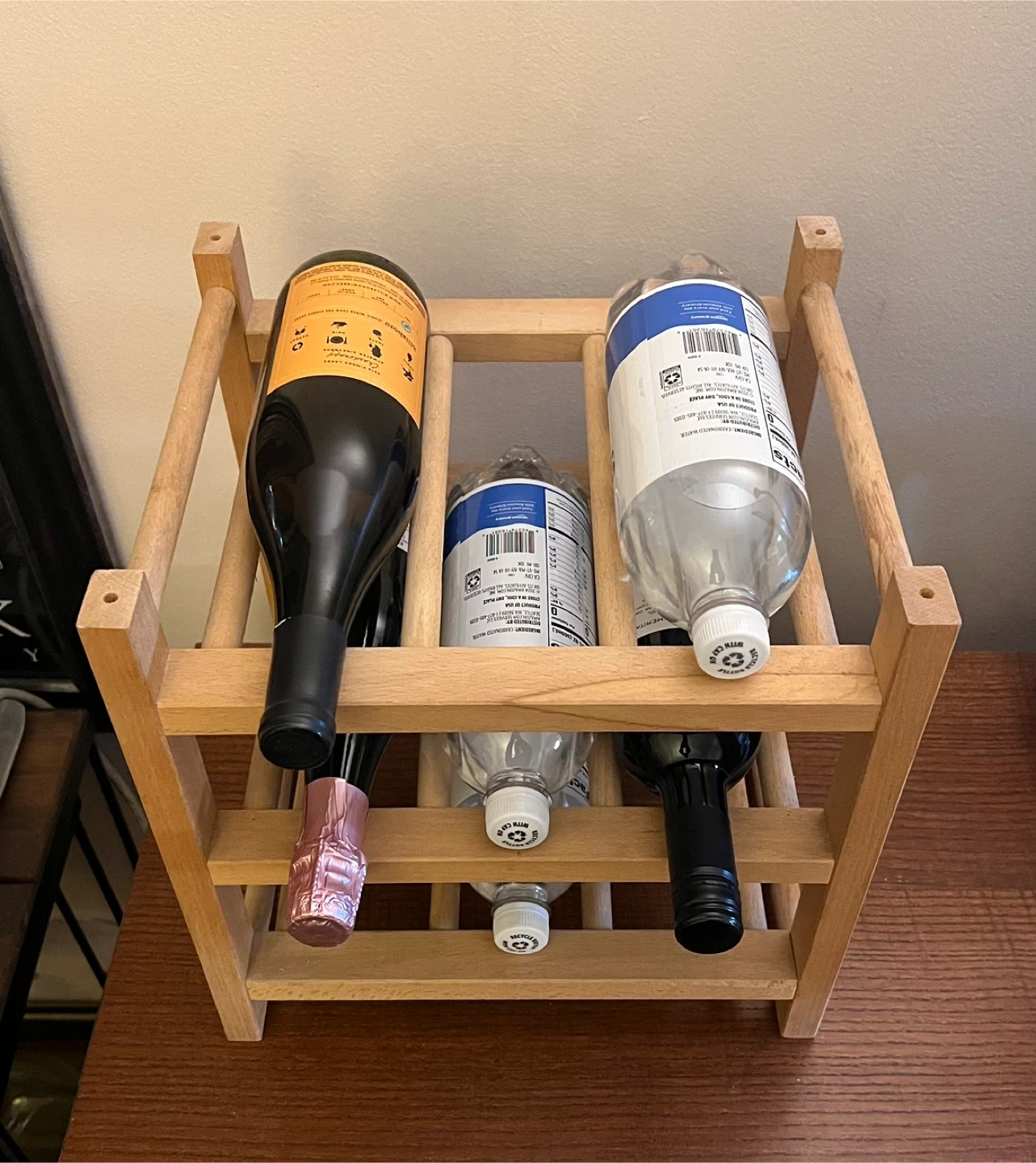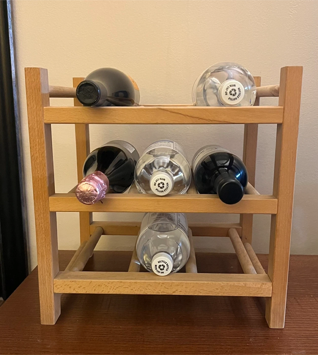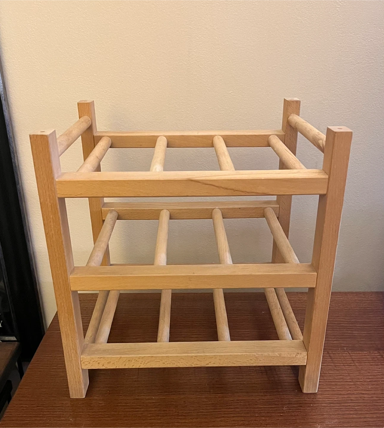 Used - in great condition! Changing my set up and no longer need. Retails for $20+tax. This sold wood wine rack has space for 9 wine bottles, or can use for 1 liter seltzer bottles, etc. Made of solid unfinished wood - you can display as-is, or paint/stain to match your decor. Can be stacked up to 3 units high, or place more to either side. Wipe clean with a damp cloth. Dimensions: 13β L x 11.75β D x 13.5β H *Bottles not included Pick up only near Astoria Park, Queens NYC 11102 Only Cash (preferred) or Venmo for payment Check out my other listings!