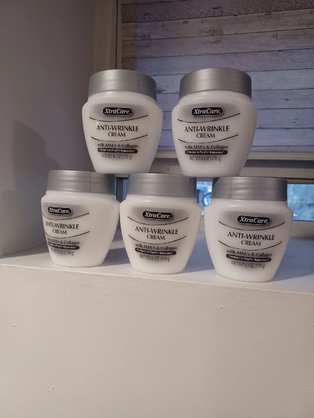 Selling a jar of XtraCare Anti-Wrinkle Cream. It contains AHAs and Collagen. Net weight is 6 oz (170 g)