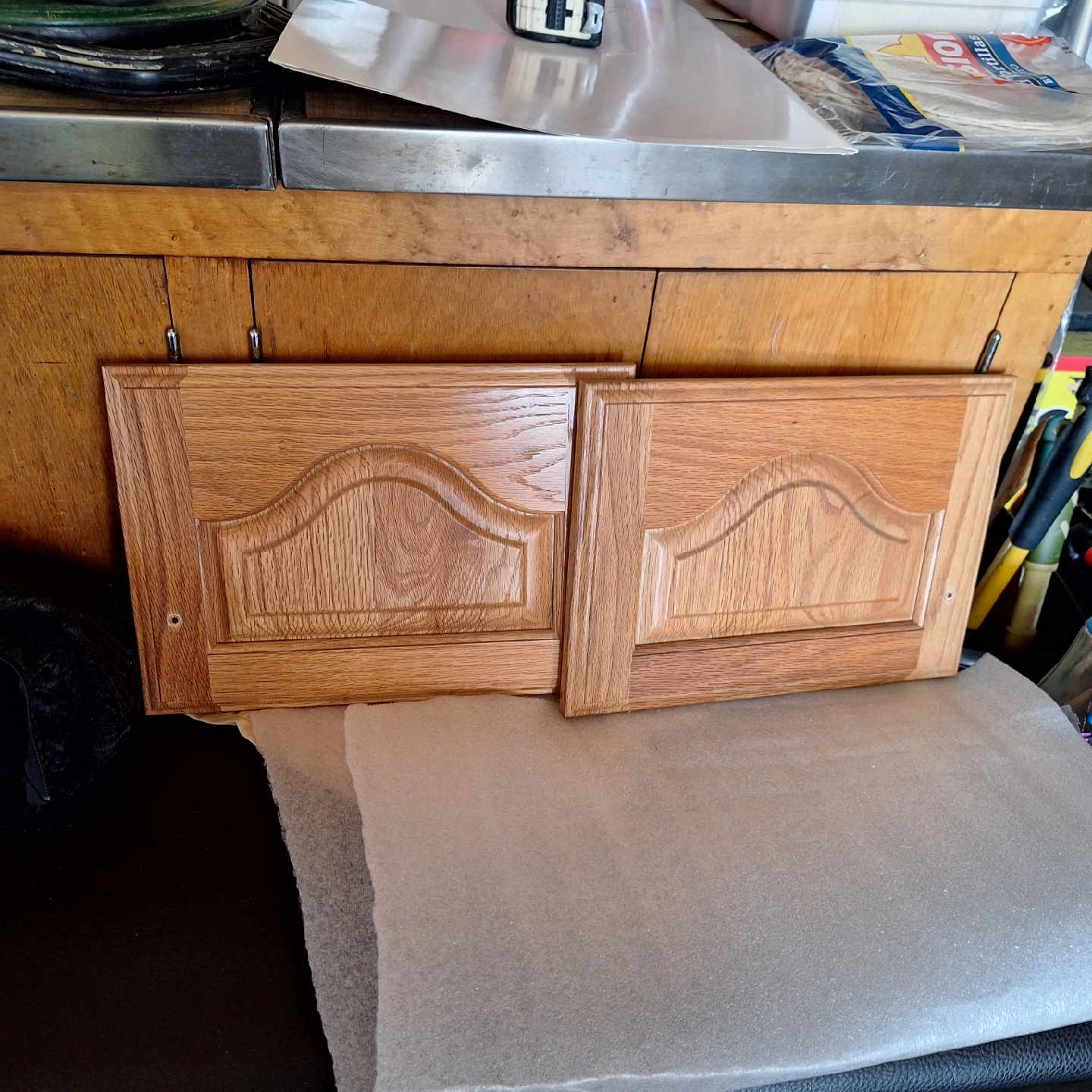 Selling a set of oak cabinet doors in various sizes. Please see the photos for dimensions. They're in good condition and ready for a new home!