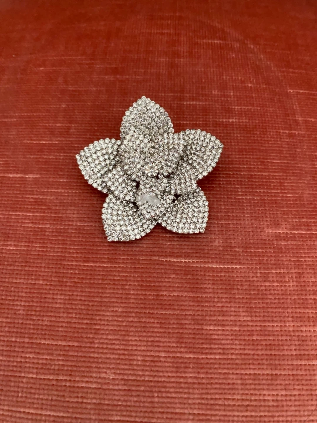 This is a beautiful rhinestone flower brooch. It would look great on a jacket, sweater, or bag!