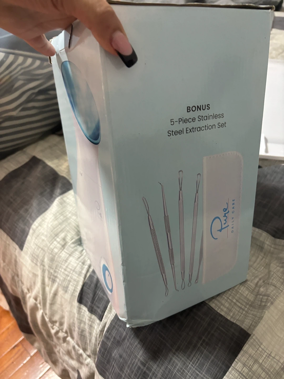 Basically new facial steamer, attempted to use it once but ended up turning it off because I was late for work lol. It comes with the set that you see on the box for pimples, zits and white heads etc