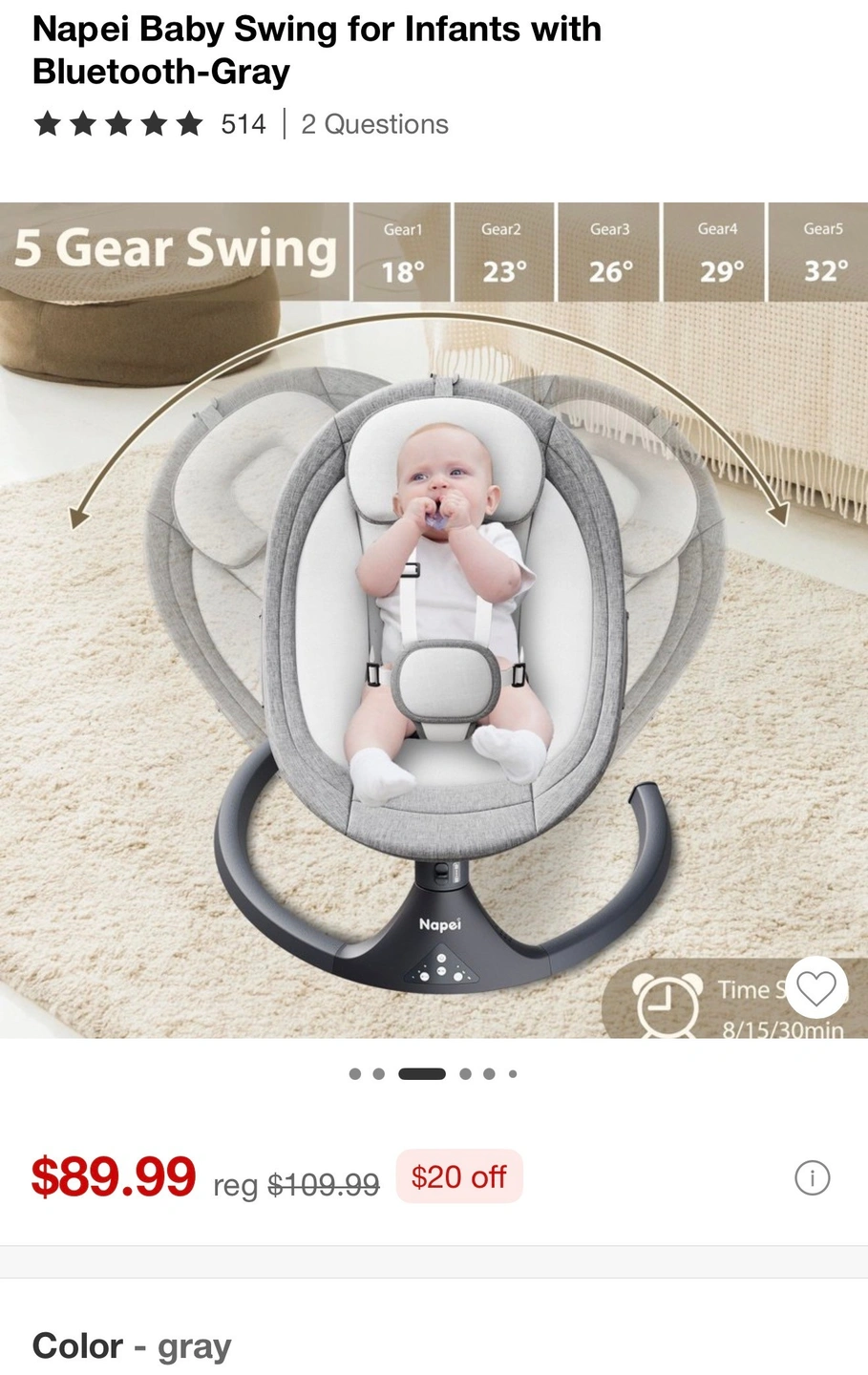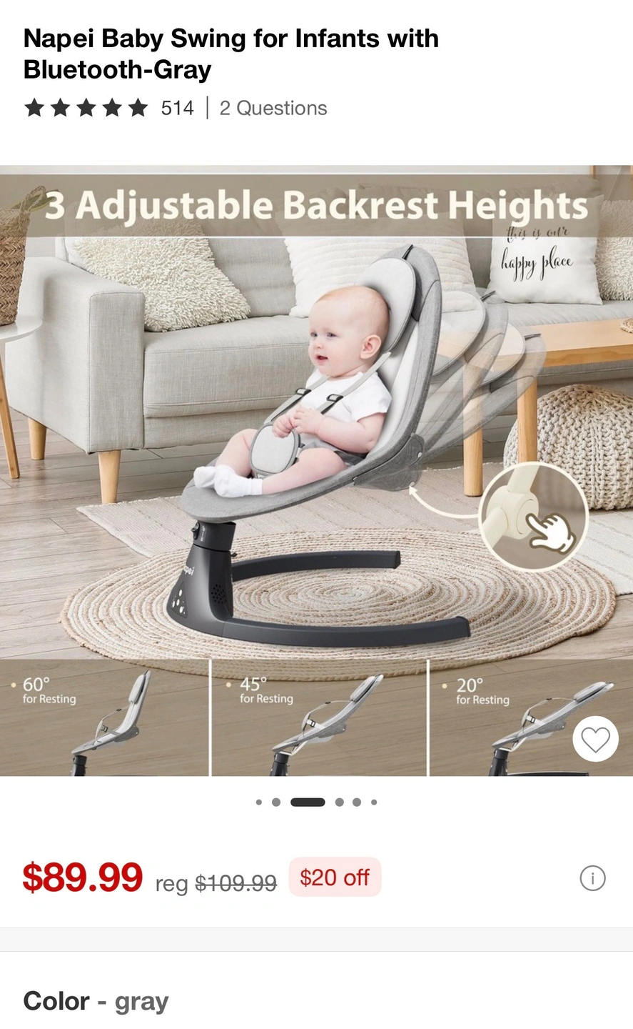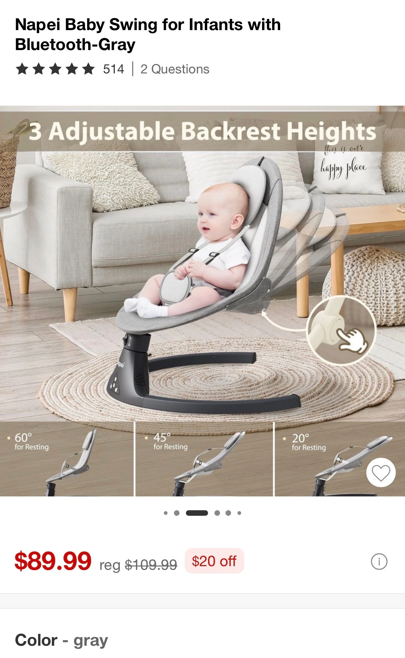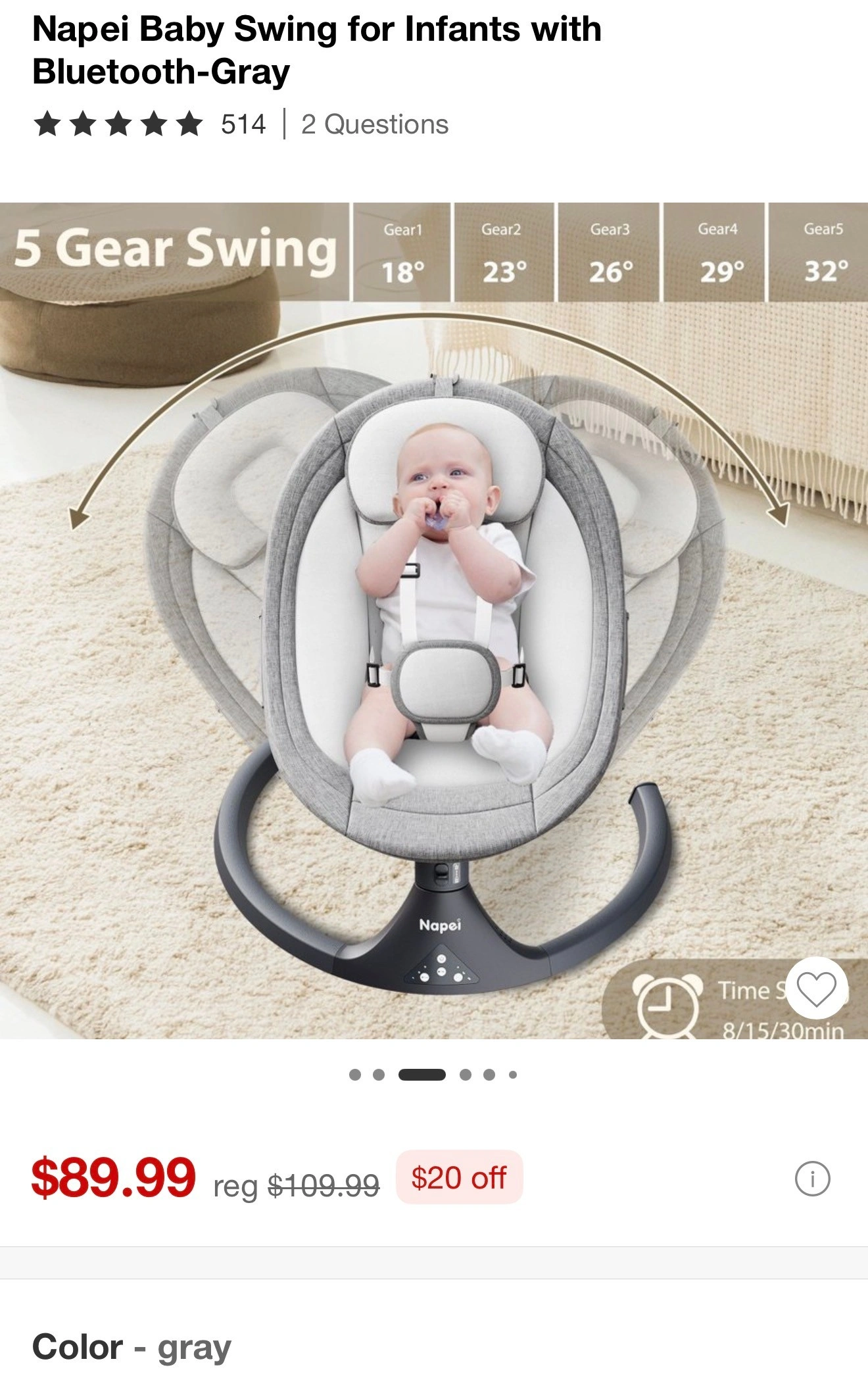 Selling this Napei Baby Swing for Infants with Bluetooth-Gray at $80. Received another one with baby registry. Is new in a box.