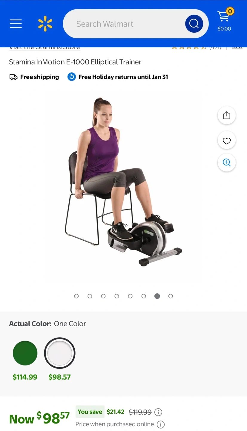 Used for less than one year, bought in Bed Bath and Beyond. Weight Capacity: 250 - 300 lbs. This compact and lightweight machine allows for a low-impact workout that protects your joints, while still burning a similar number of calories as jogging. The versatile design allows you to work out standing or sitting, and the adjustable tension lets you control the intensity.