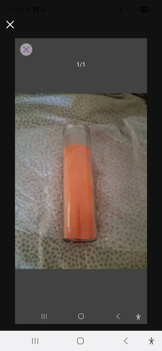 70Selling an orange prayer candle. It's in a clear glass jar. Great for adding a touch of color and warmth to any space