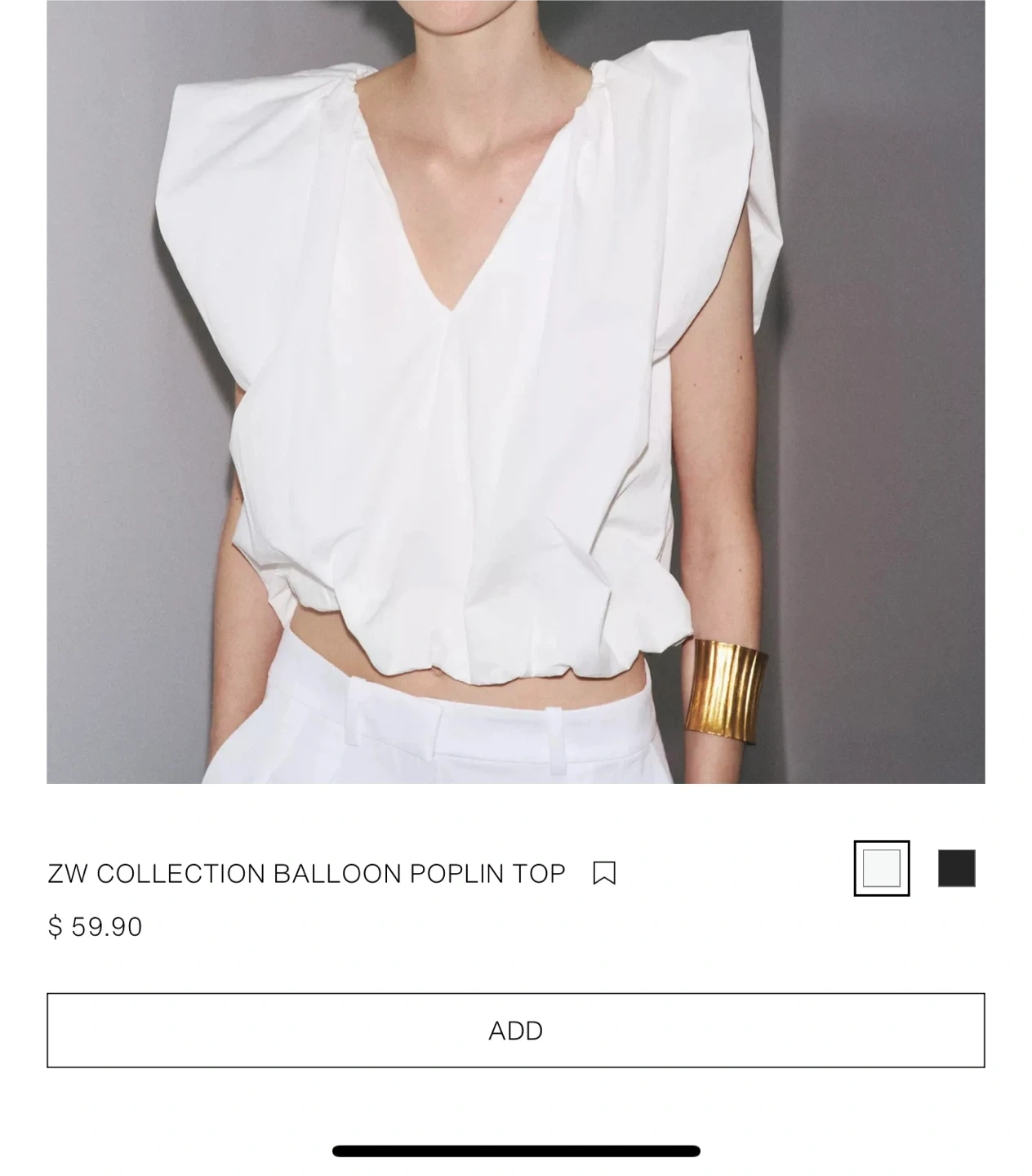 65This is a Zara ZW Collection Balloon Poplin Top. It's a stylish and unique piece that can elevate any outfit. Originally bought for $59.90