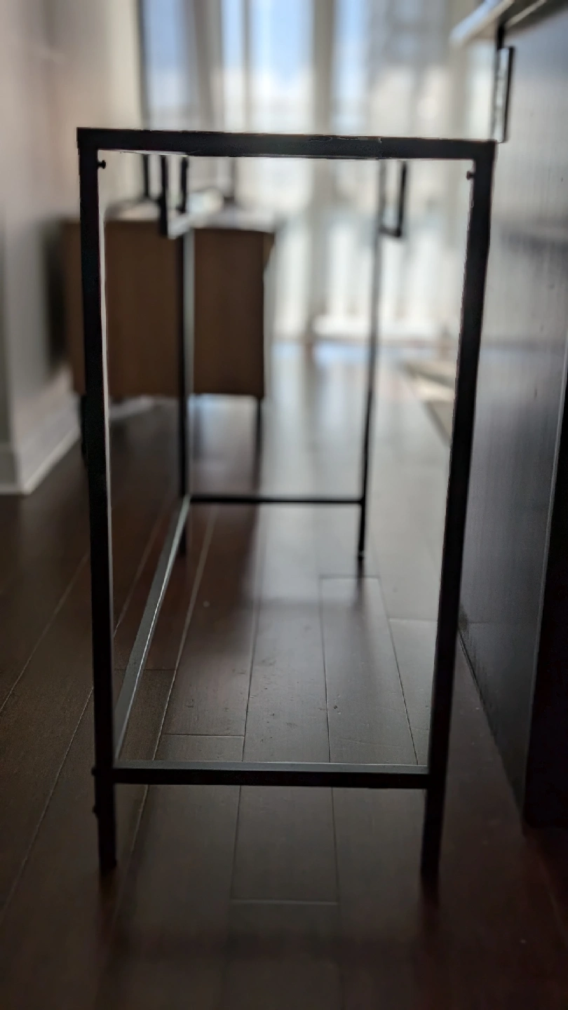 62Selling a console table with a sleek glass top and a sturdy metal frame! It's perfect for adding a touch of modern elegance to your living room or entryway. The table is in great condition and ready for a new home