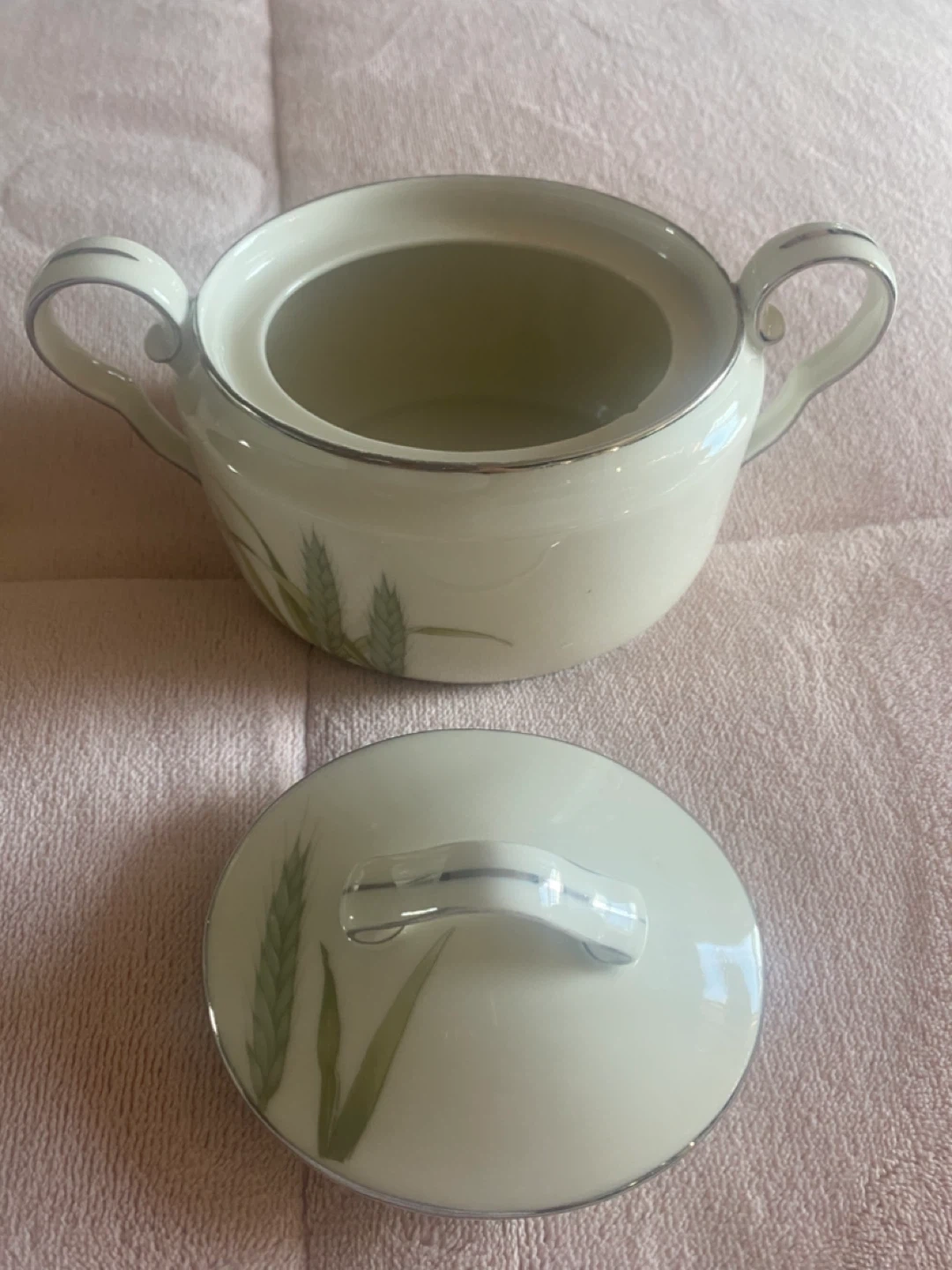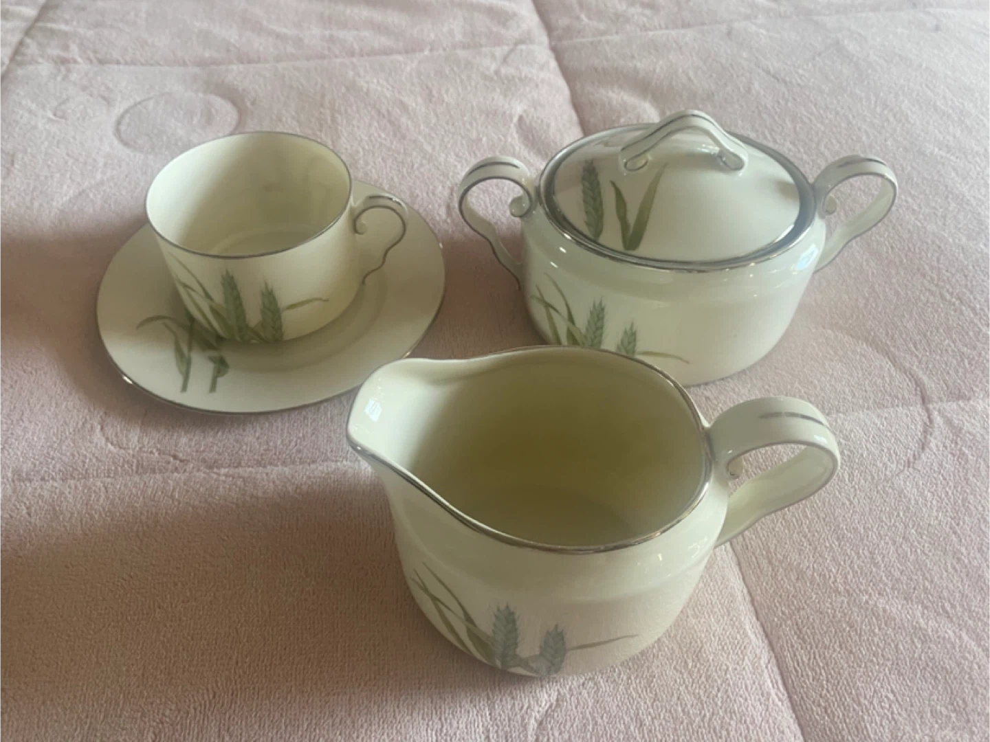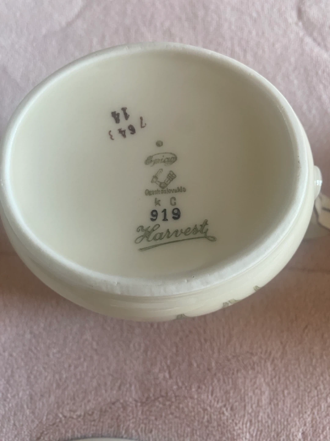 Selling an Epiag Czechoslovakia sugar bowl cream bowl 4 Tea bowl from the Harvest Rare Epiag Bone China From Czechoslovakia Harvest Pattern 1920- collection! It's in great condition and features a lovely wheat design. Perfect addition to your vintage tableware collection