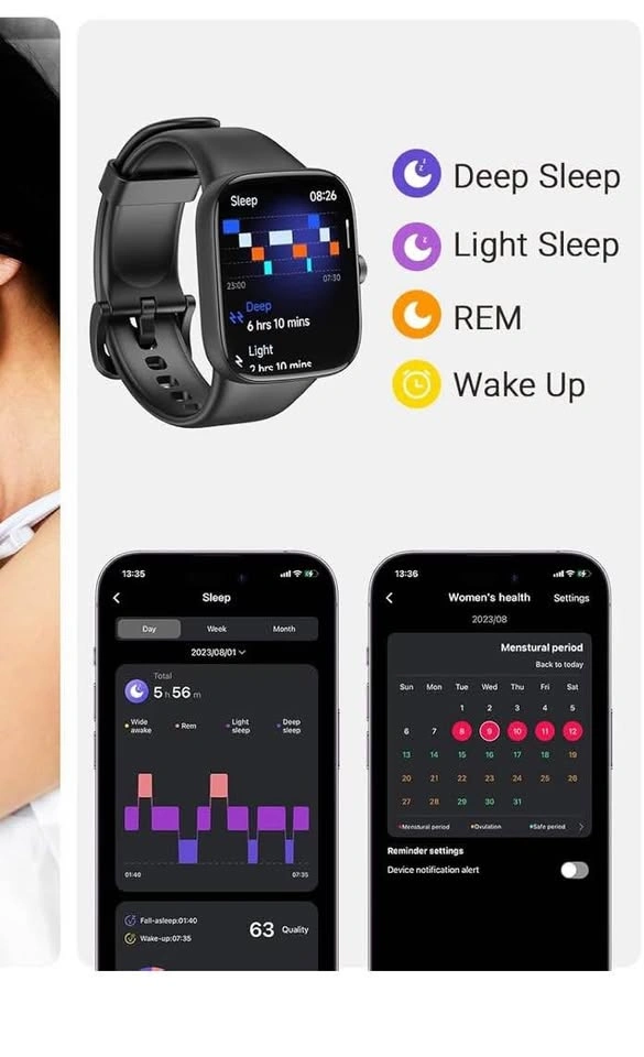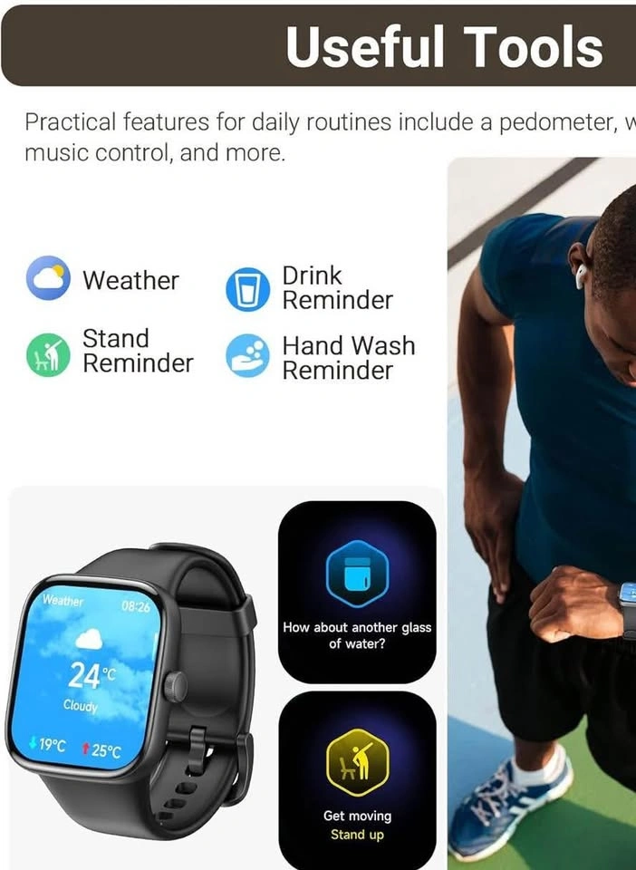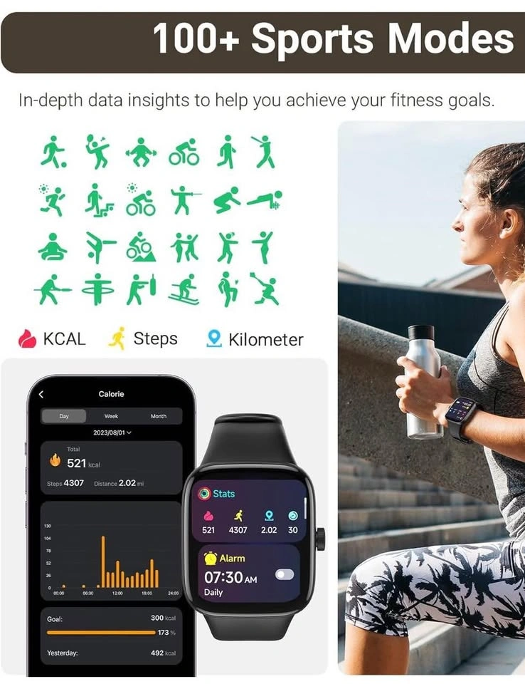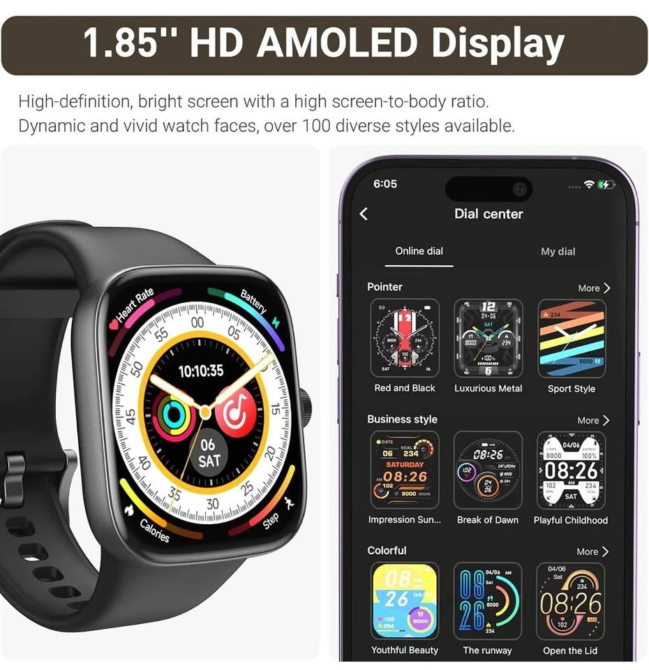 86Smart Watch Bluetooth Call 1.85 Inch Ultra HD Screen, Dynamic Dials Messages Push 100+ Sports Modes, Detect Human Health Sleep Monitor with High Battery Life, Touch Function