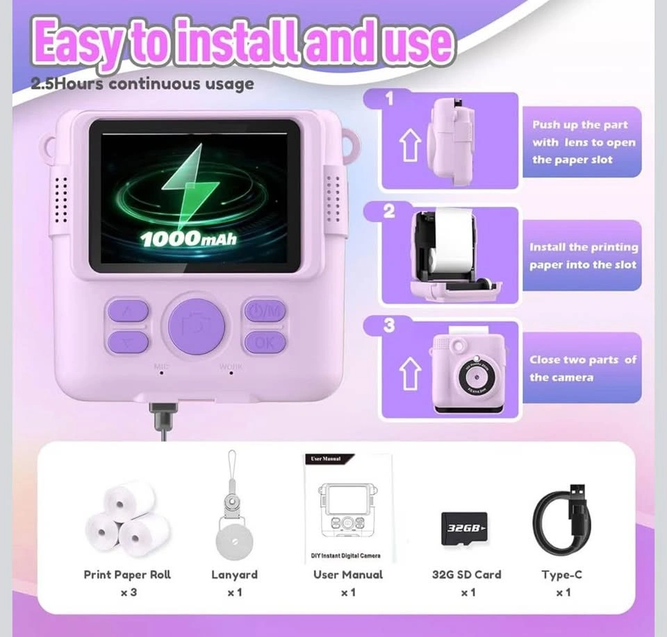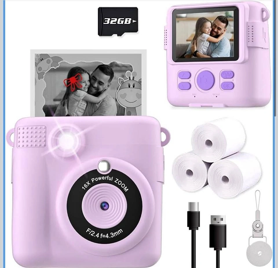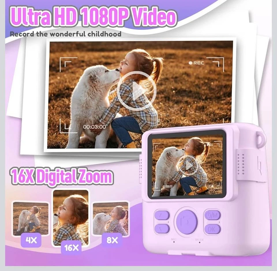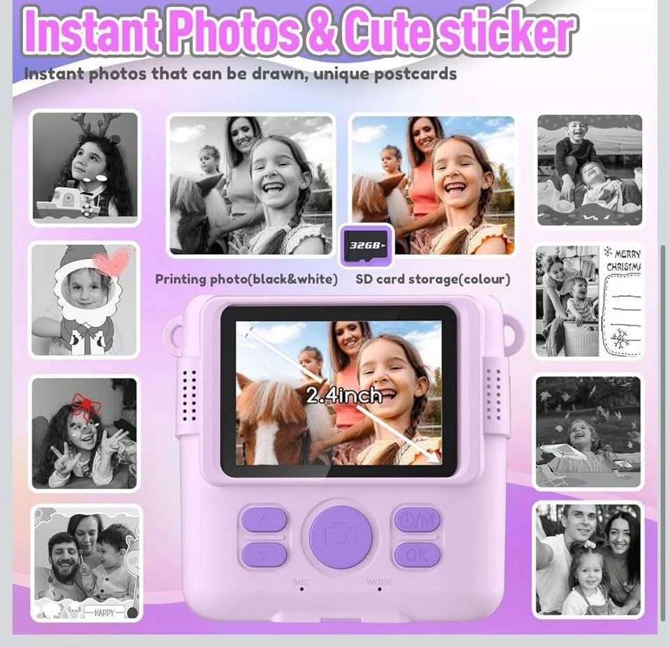 97Instant Print Camera for Kids, Christmas Birthday Gifts for Girls Boys, HD Digital Video Cameras for Toddler, Portable Toy for 4 5 6 7 8 9 10 Year Old Girl with 32GB SD Card-Purple