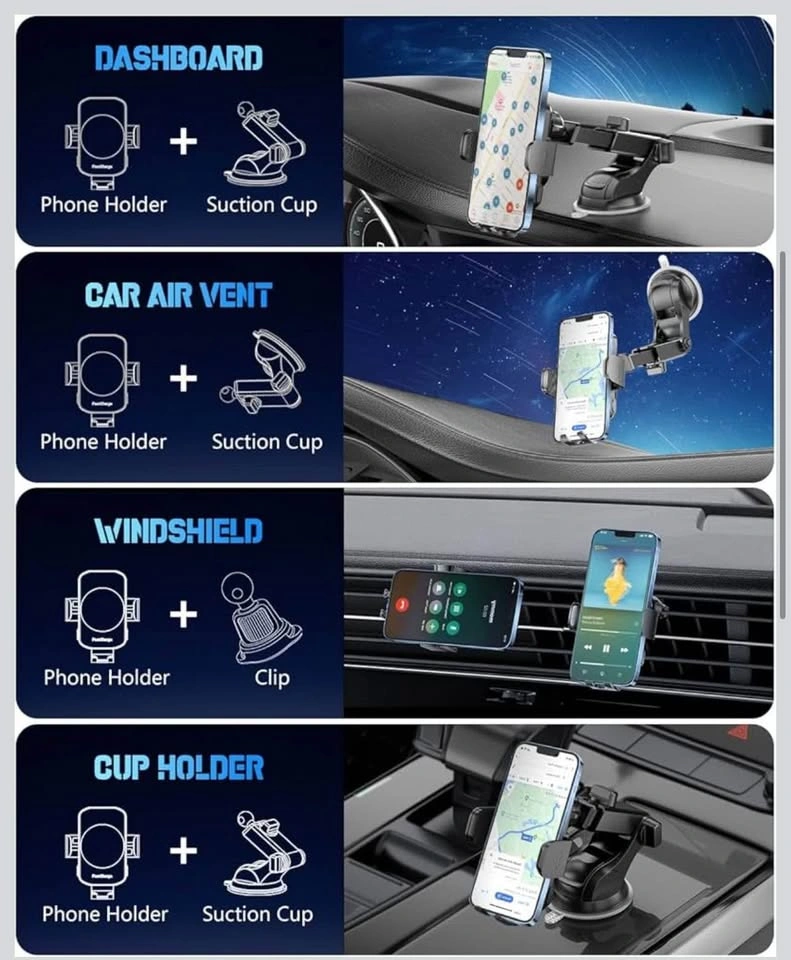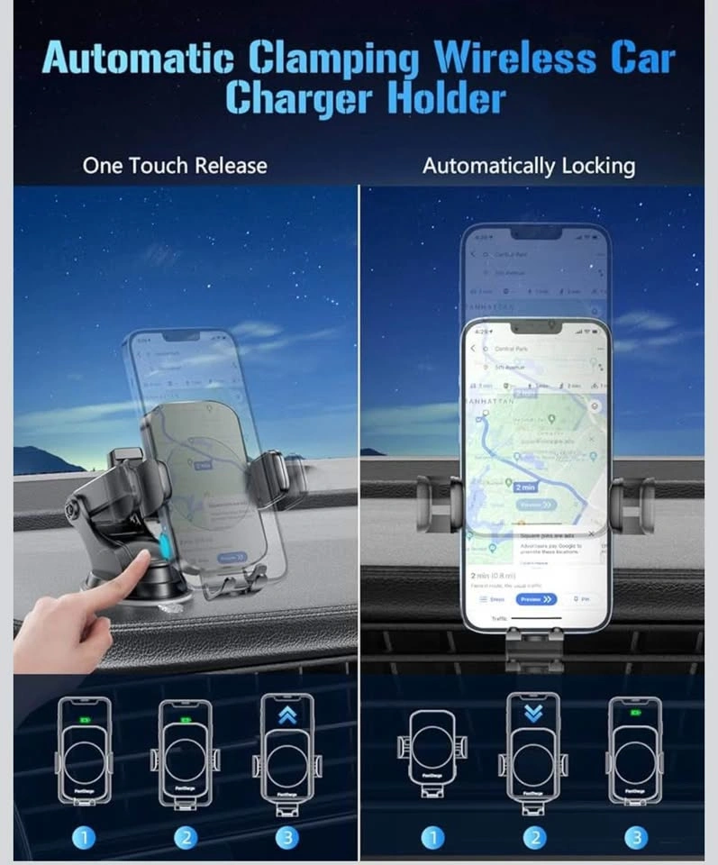 86Wireless Car Charger, Fast Charging Phone Holder 3 in 1 Phone Mount Auto Clamping Car Accessories Compatible with iPhone 17 16 15 14 13 12 11 Xs XR, Samsung S23 Ultra S22 S21 S20(Deep Space Black)