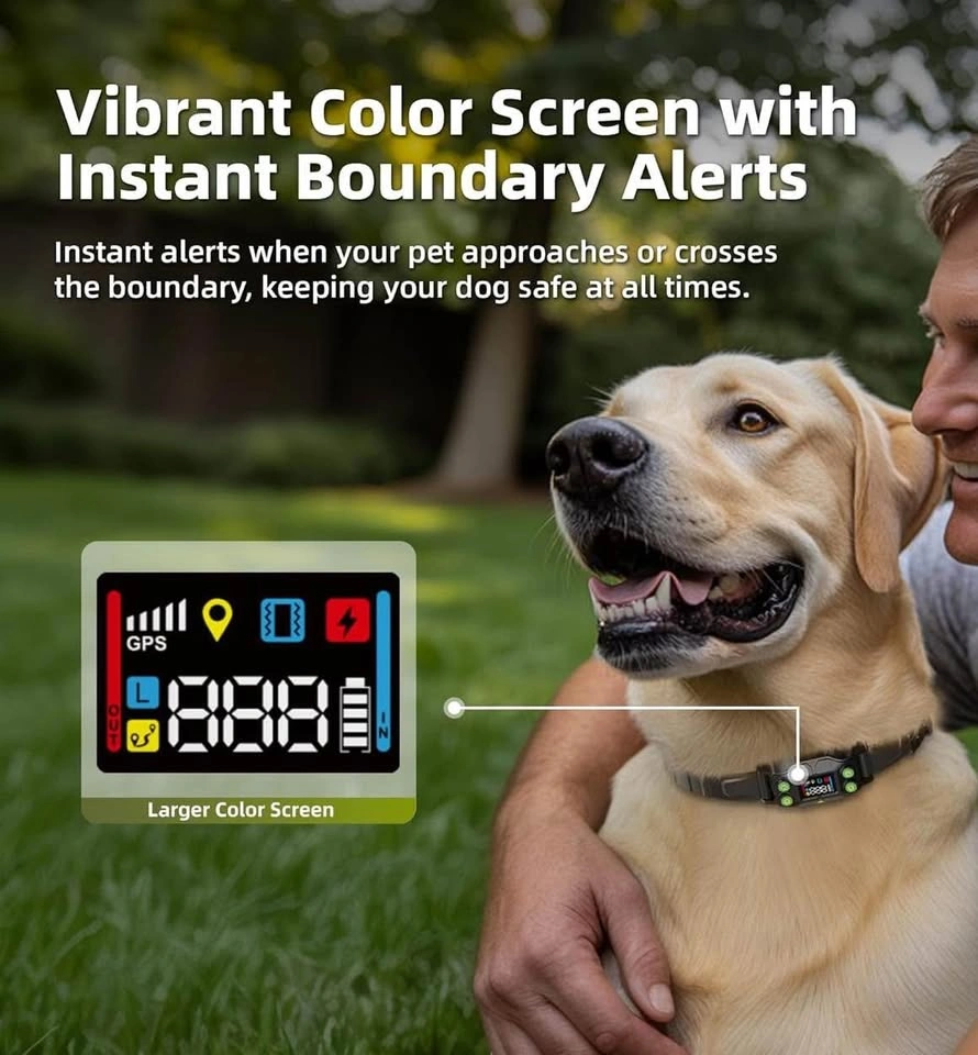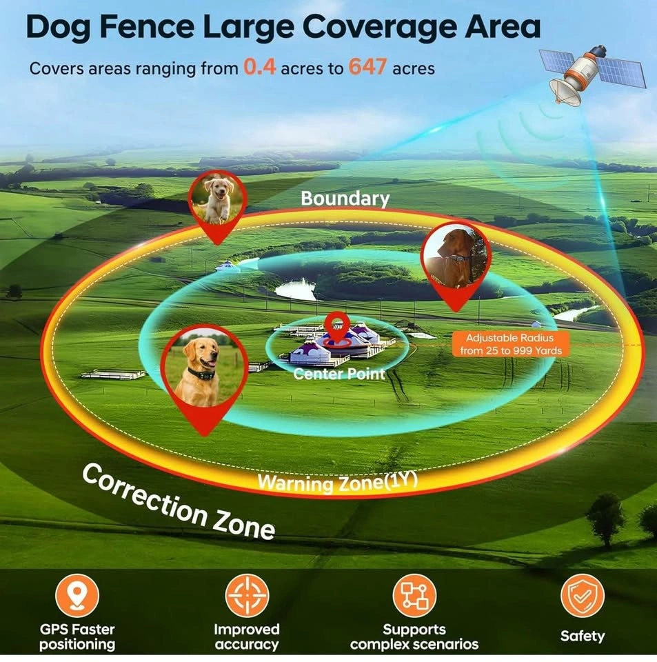 86Wireless Dog Fence, GPS Dog Collar Fence System, Invisible Electric Fence for Dogs with 3 Warning Modes, Radius 25-999 Yards, IPX7 Waterproof/Rechargeable Electric Dog Fence for Outdoor Use