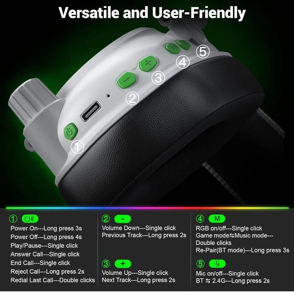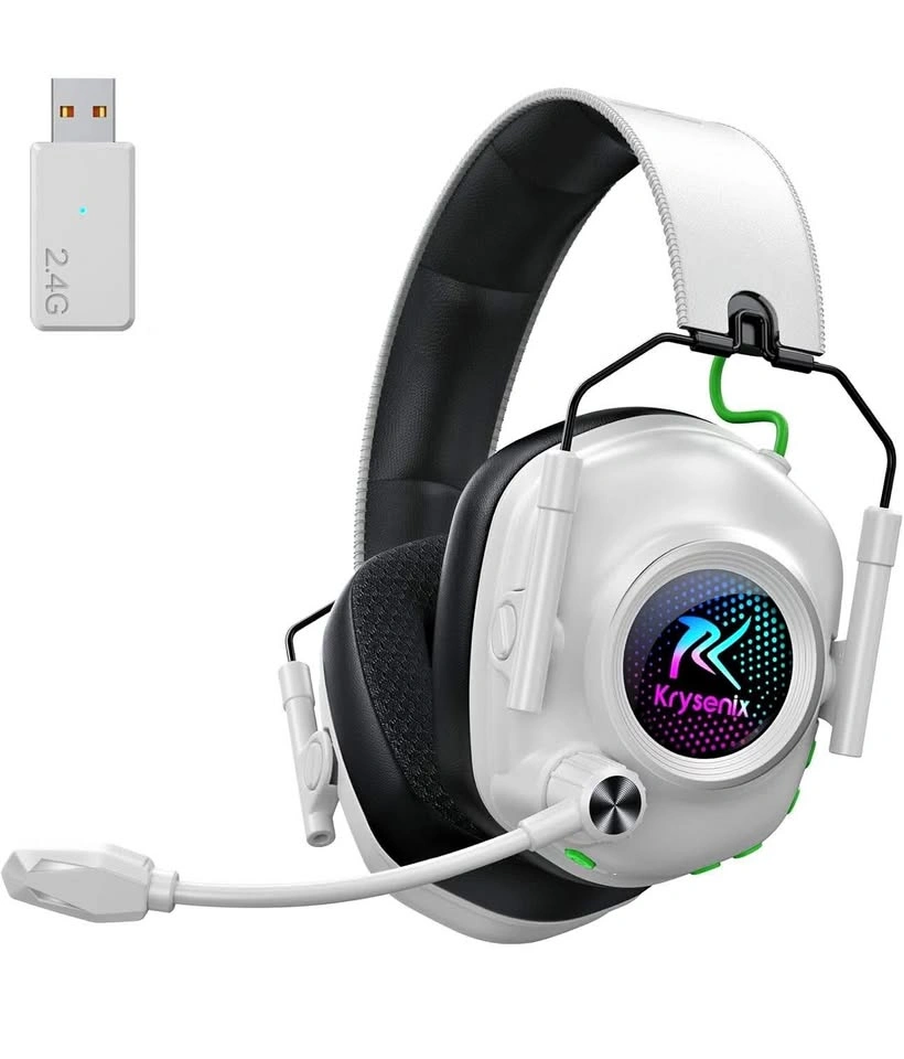 86Wireless Gaming Headset with Noise Canceling Microphone for PC, PS5, PS4, Switch, Mac,2.4 GHz Wireless & Bluetooth 5.4 Gaming Headphones, Cool RGB Lighting, 40Hr Battery, 50mm Drivers-White