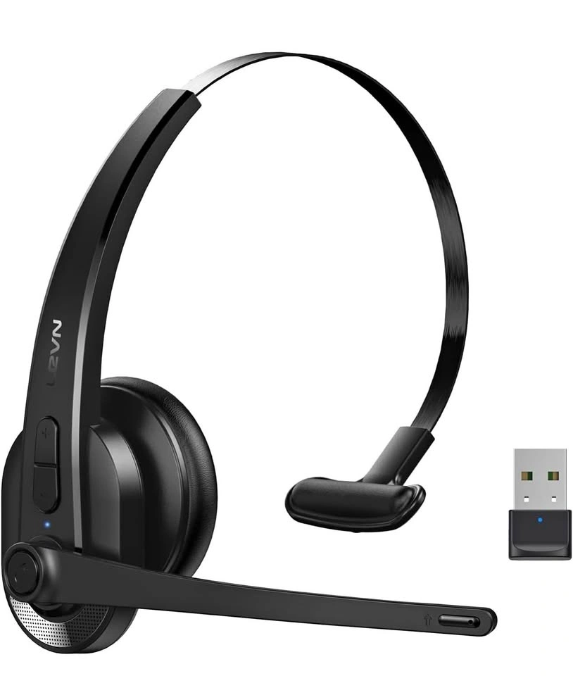 97Wireless Headset with Mic for Work, Bluetooth Headset with Microphone-AI Noise Cancelling, Single-Ear Wireless Headphones with Mic & USB Dongle for PC/Computer/Call Center/Laptop/Teams/Zoom/Home