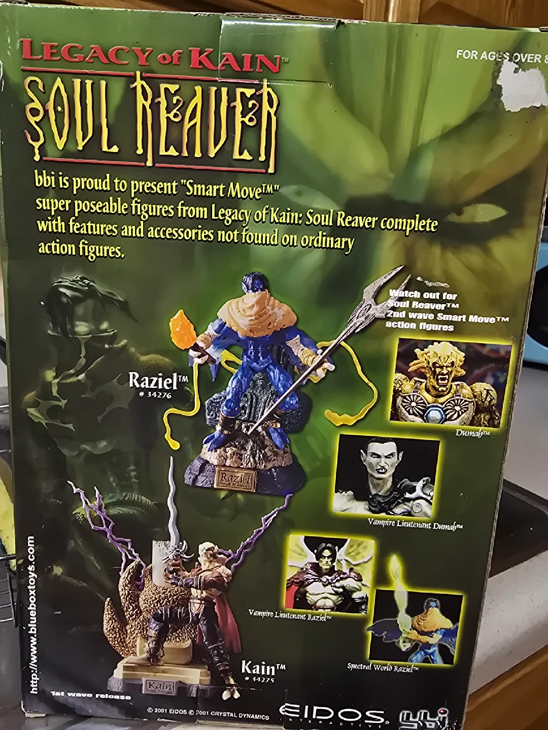 92Selling a Legacy of Kain: Soul Reaver Kain action figure. It's still in its original packaging! This figure is a super poseable figure complete with features and accessories not found on ordinary action figures. A great addition for any collector or fan of the Legacy of Kain series. new in box.