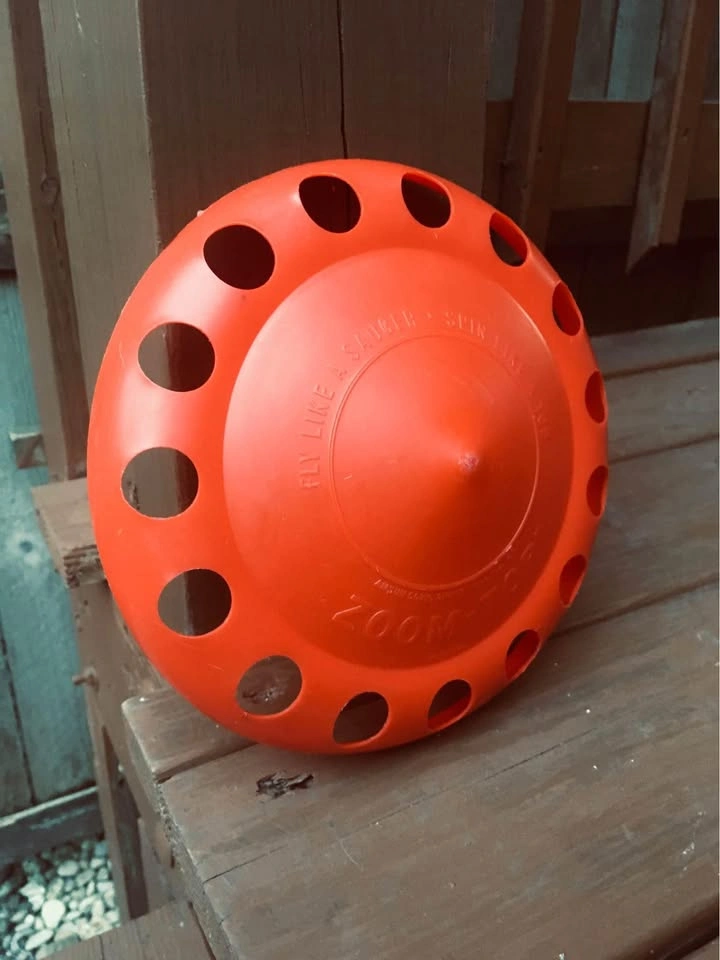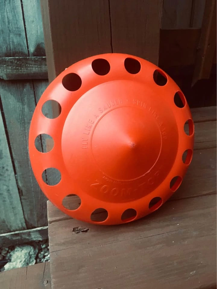 Fly like a saucer, spin like a top. Vintage 1970s frisbee toy is in great condition with minimal wear. Made by Amsun Corp. Cherry Hill, NJ. You can fling it like a frisbee or spin it like a top. Great toy for kids, pets or collectors. Measures 9” in diameter and is 2” tall. From a smoke and pet free home. Check out in person before purchasing. Thanks for looking.
