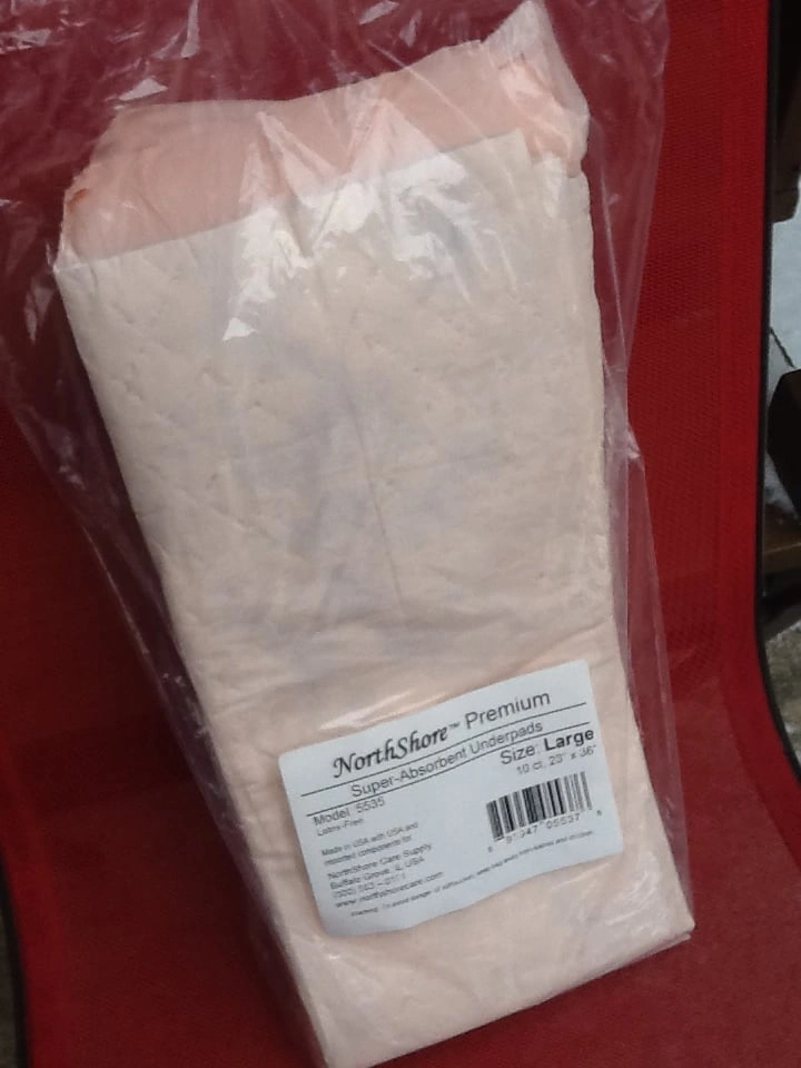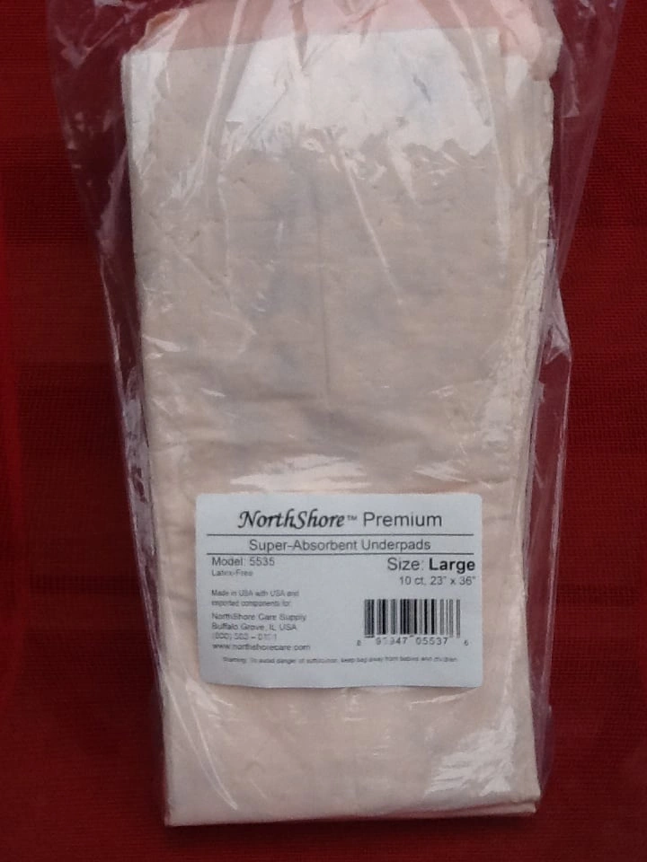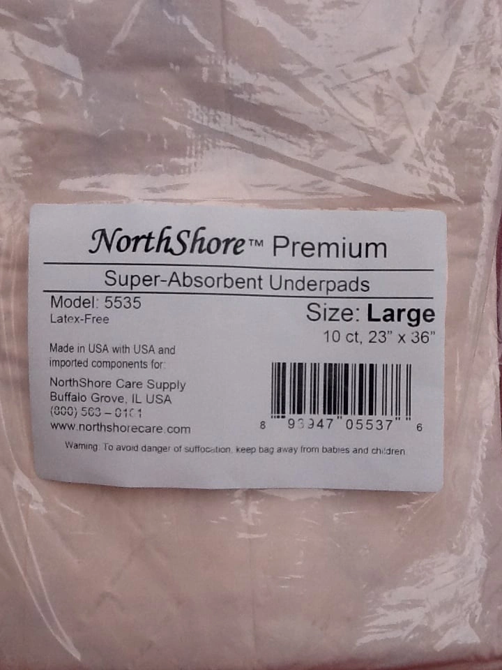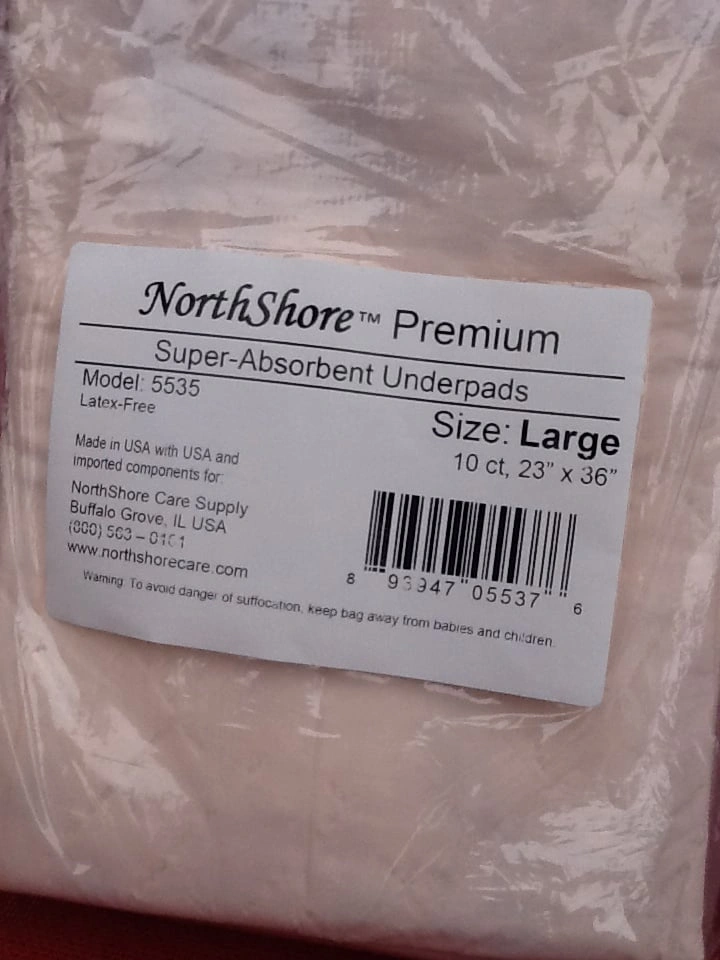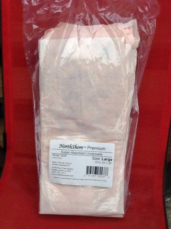 NorthShore Premium Peach Super-Absorbent Underpads - 10 Pack - Large 23" x 36" Brand new unopened item. 42 oz. capacity per pad. Protects bedding, chairs and more. Latex free and made in the USA. From a smoke and pet free home. Check out in person before purchasing. Thanks for looking.