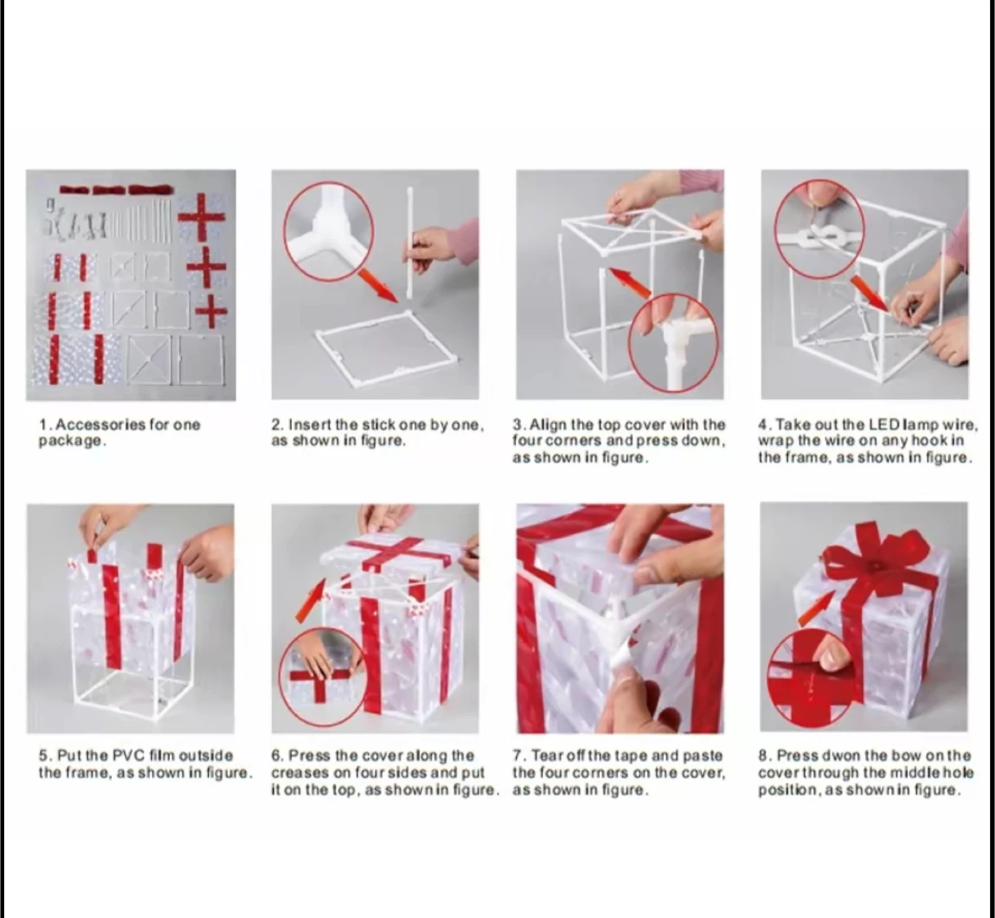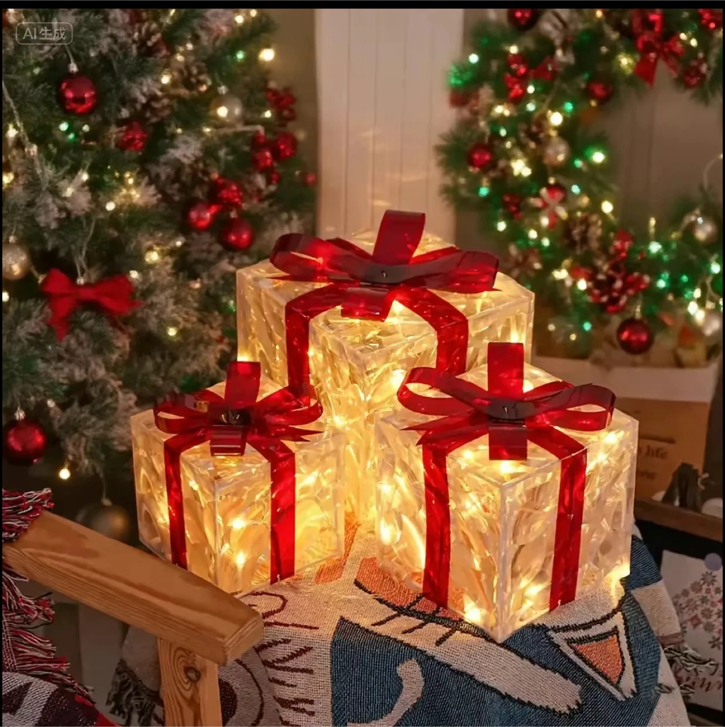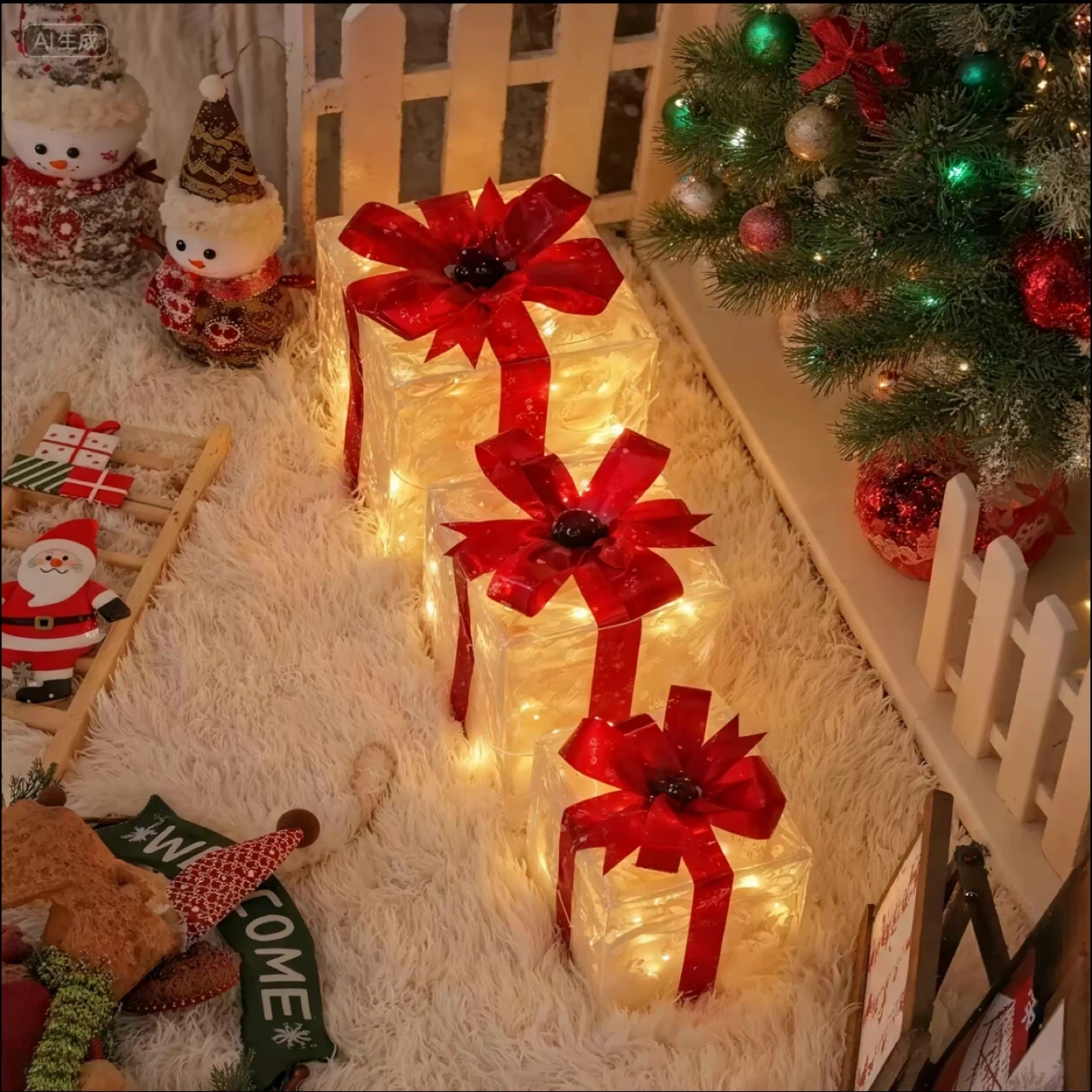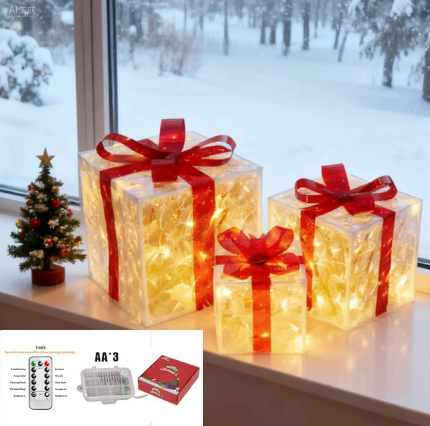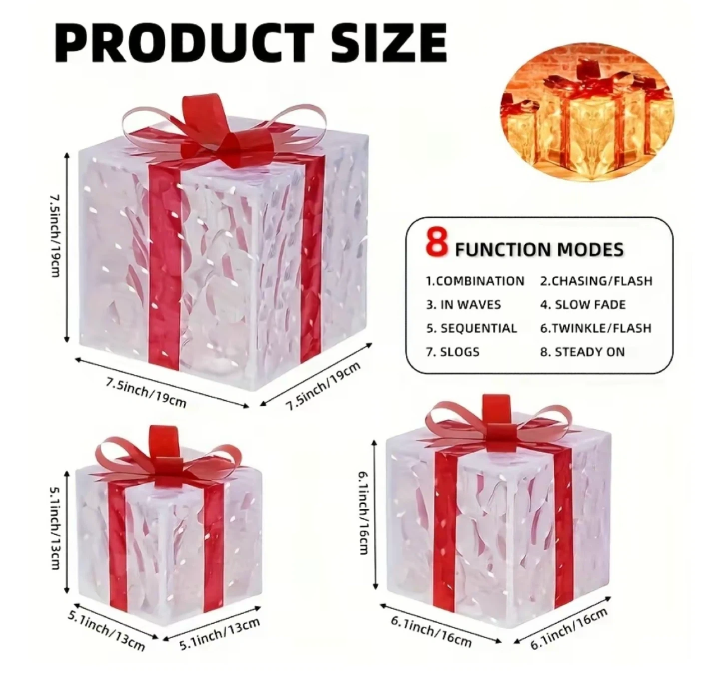 1543-Piece Light- USB/Battery- Powered with 8 Flashing Modes, TransparentPVC Gift Box (Warm White/Red Bow Style), Decoration for Christmas Trees, Courtyards, Homes & Outdoors, Suitable for Halloween & Christmas