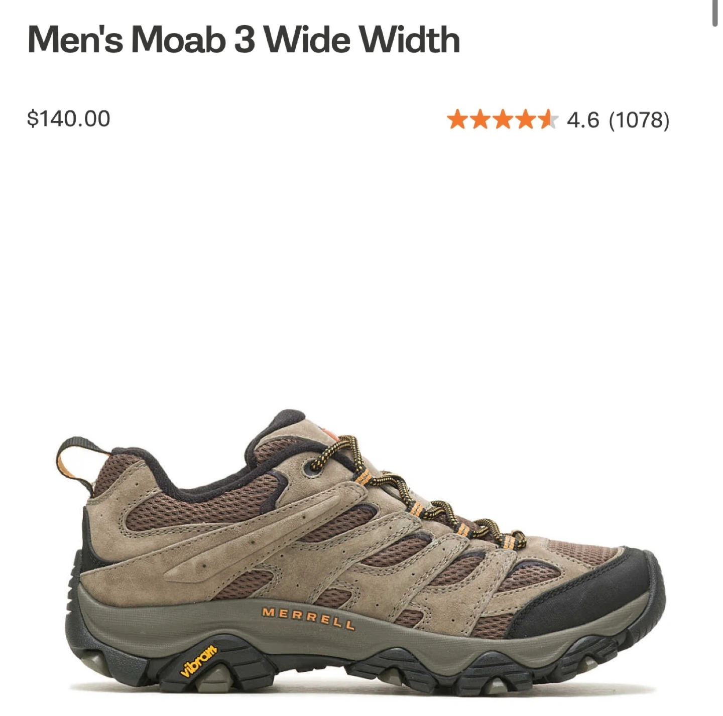 Selling a pair of Merrell Moab 3 Wide Width men's hiking shoes! They are in great condition and come with the original box. These shoes are perfect for hiking and outdoor activities. Originally bought for $140