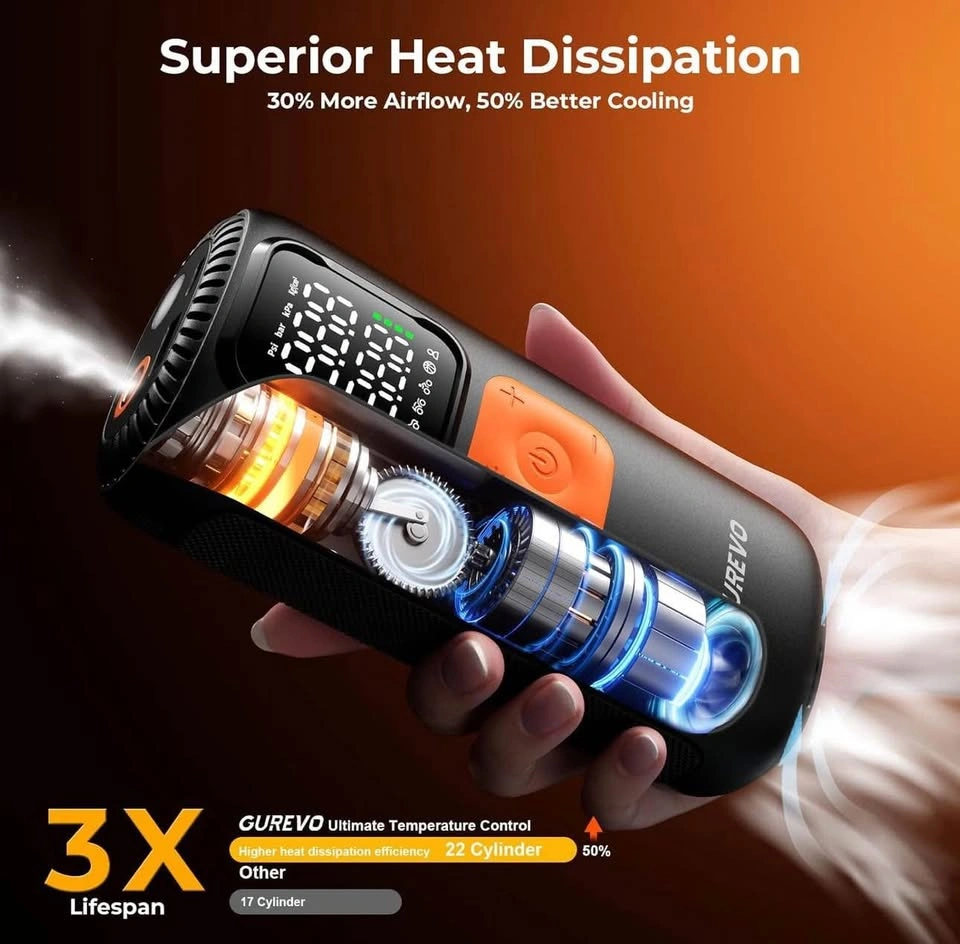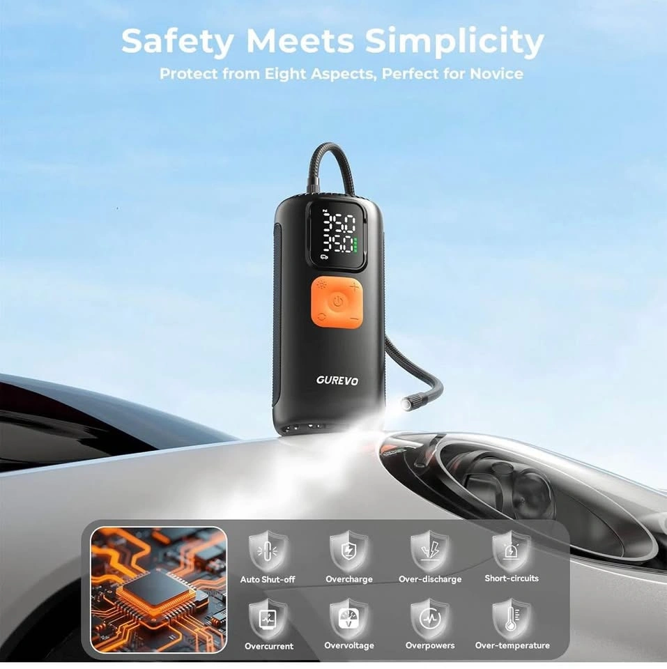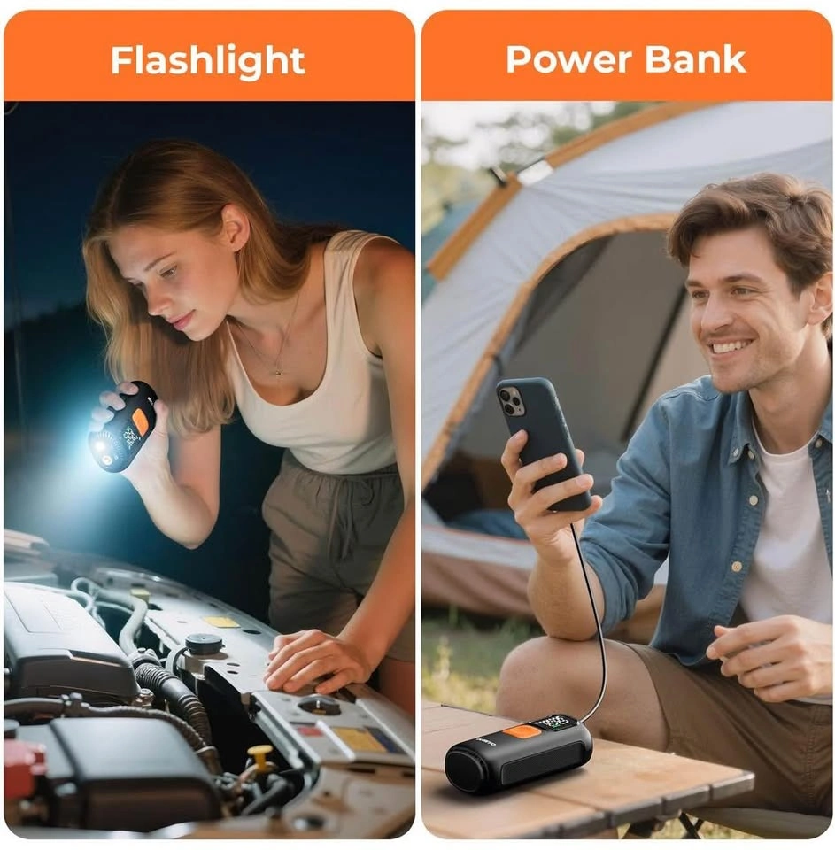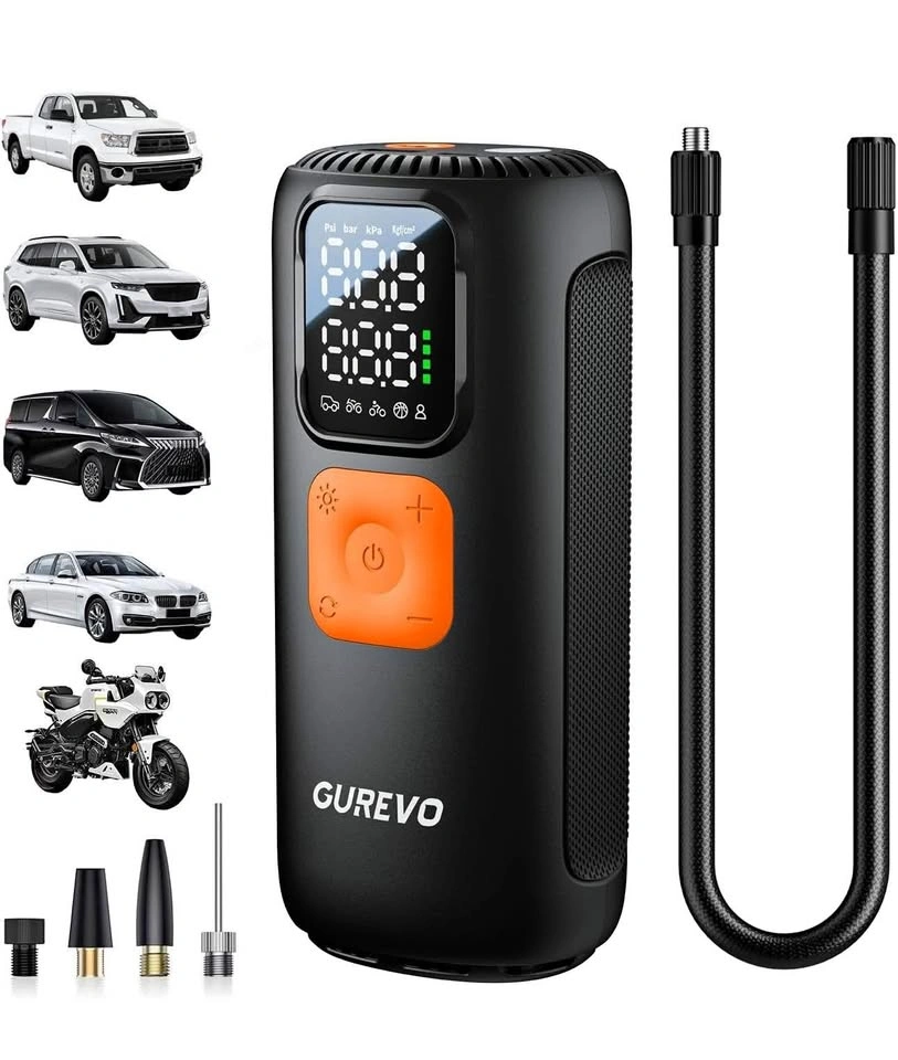 86Tire Inflator Portable Air Compressor, 160 PSI Cordless Car Tire Inflator with Digital Pressure Gauge, LED Light and Auto Shut-Off Function - Air Pump for Car, Truck, Motorcycle, Bicycle, Ball