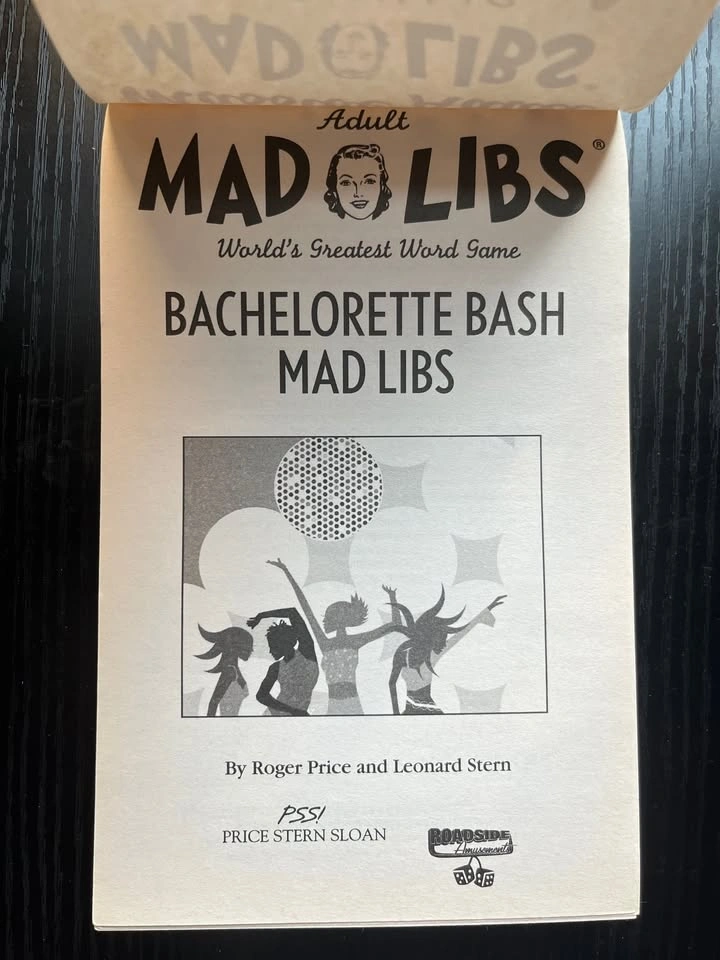 65Massive Adult Mad Libs (Bachelorette Bash) booklet with one page used.
