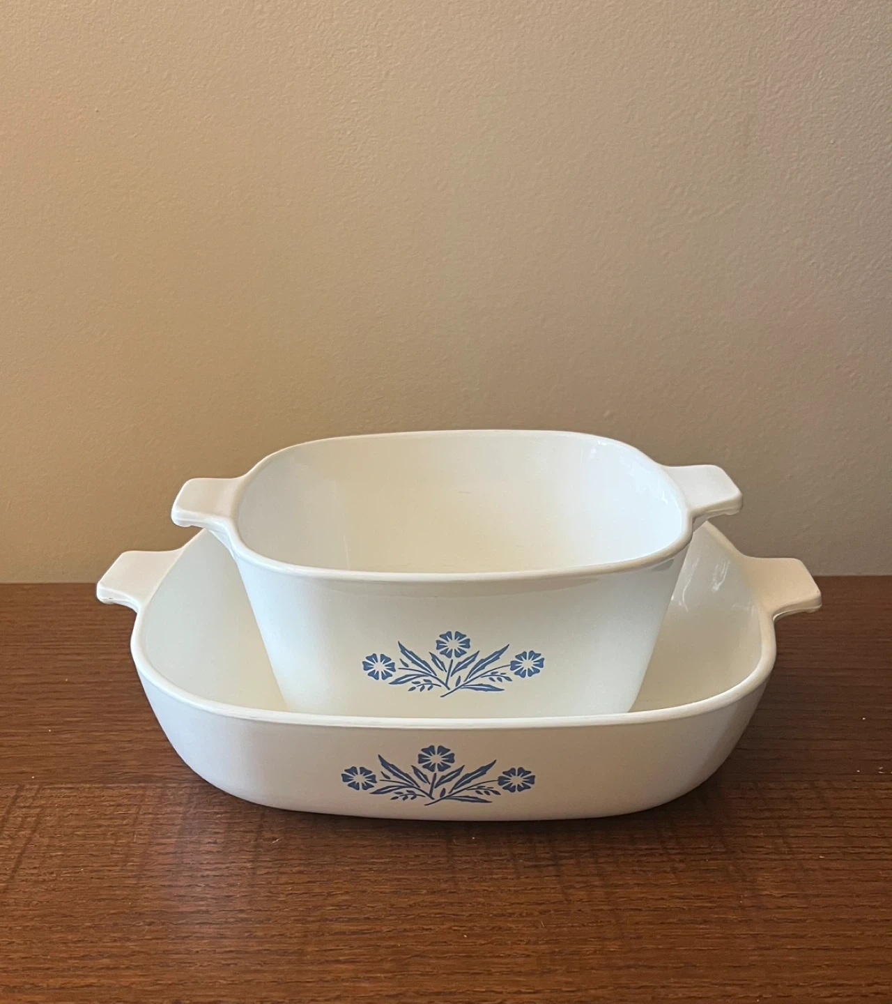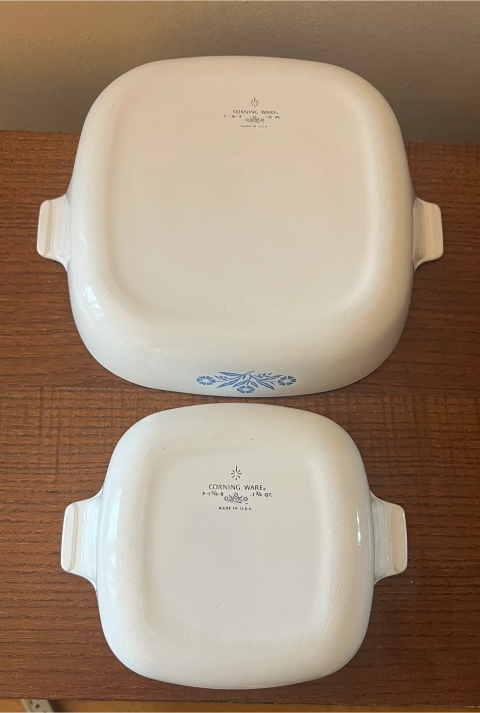 In great condition! Normal signs of wear from grandma’s cooking. No chips, dents, baked on food stains, etc. *10 inch / 1.5 quart casserole skillet (P-10-B): dimensions 10” square dish (12” W with handles) x 2.25” H *1.75 Qt casserole dish (P-1 3/4-B): dimensions 7” square (8.75” W with handles) x 3.5” H **No lids for either dish These pieces are from the original Corning Ware "P" Series Bakeware Line, and feature the 1960s Black printed back stamp Made of pyroceram can be used in the oven or broiler, and as a serving piece for entertaining. Pick up only near Astoria Park, Queens NYC 11102 Only Cash (preferred) or Venmo for payment Check out my other listings!