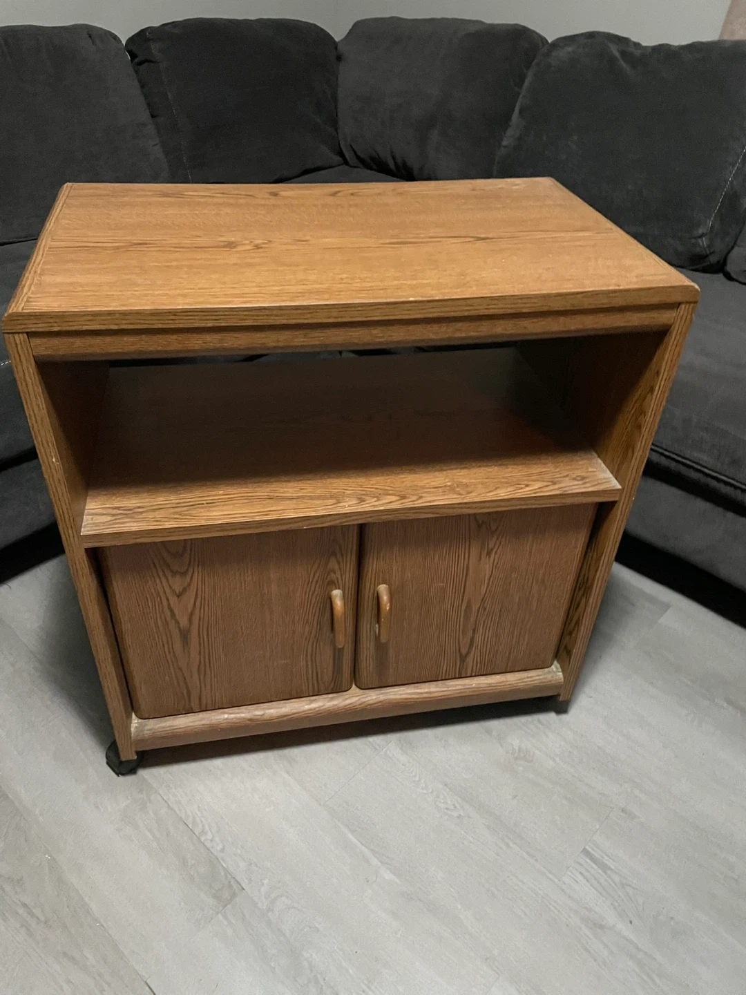64Selling a wooden TV stand that features a shelf and cabinet. It's in good condition and perfect for adding some storage to your living room or entertainment area. The cabinet doors provide a nice, clean look! $10