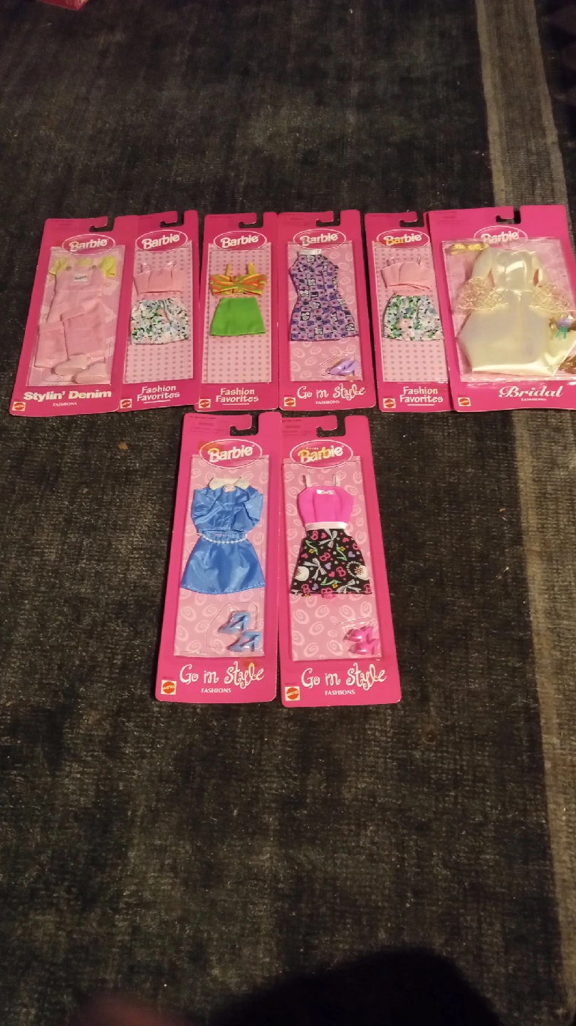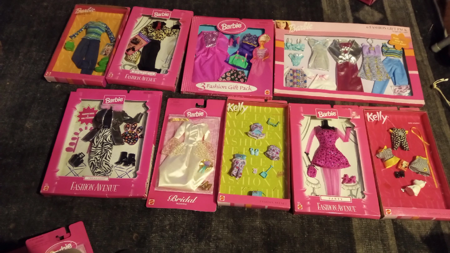 90I have a collection of 17, barbie clothes. all new. good Price if sold together. you can give s lot of love at Xmas.. will sell separately. at 5 dollars. will include barbie closet.